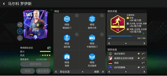 适合玩家 1、罗伊斯的高级油炸丸子花式手感灵活,适合喜欢前场单点持球进攻的玩家 2、罗伊斯边路冲击力强,能出任前场多个位置,适合边路进攻能力不足的玩家 3、罗伊斯的身材比较瘦弱,适合对摇杆调整控制娴熟的玩家 同类型球员 罗伊斯出任边锋时,他基本跟此前赛博超能足球活动中推出的这张克瓦拉茨赫利亚定位类似。两人都有灵活的持球手感,擅长边路内切得分。同时,两人的锋线存在感都很高,比赛中的主动回撤接球不多,