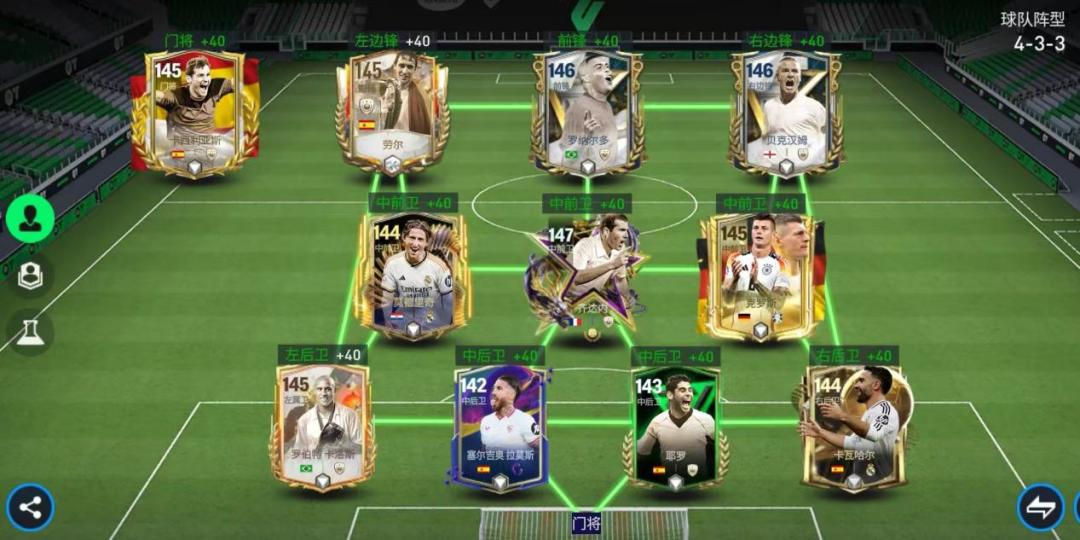 各位《FC足球世界》的玩家朋友们,在我们游戏中,贝克汉姆作为一名热门传奇球员也是推出了众多强力版本,本期文章我们就来看看由146能力值的传奇圣殿贝克汉姆领衔的皇家马德里现役、传奇混搭队套,实力如何! 阵容方面 首发阵容(4-3-3平行) 前场:劳尔、罗纳尔多、贝克汉姆 中场:莫德里奇、齐达内、克罗斯 后场:卡洛斯、拉莫斯、耶罗、卡瓦哈尔 门将:卡西利亚斯 实战打法-进攻 进攻方式1(边路突