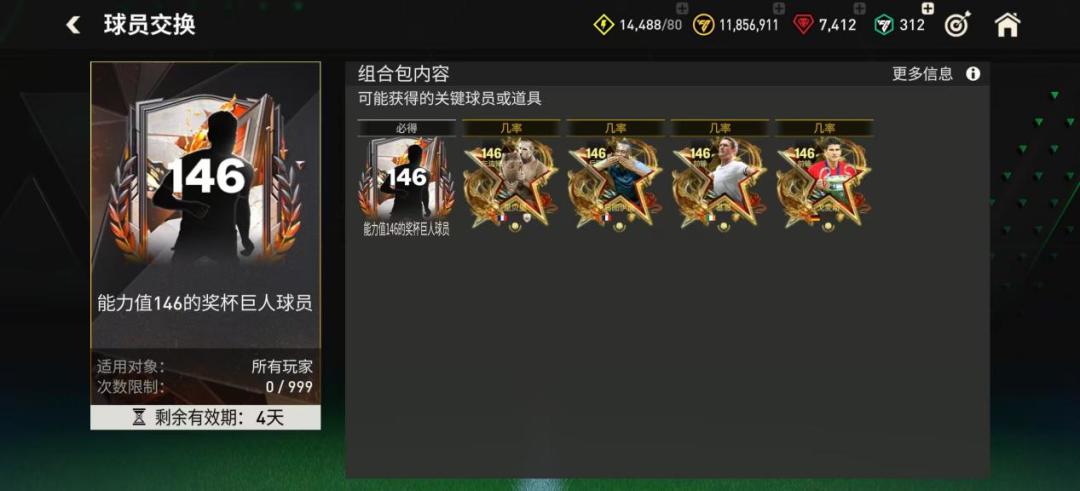 FC那些事:144能力值欧冠联赛阶段团队2球员