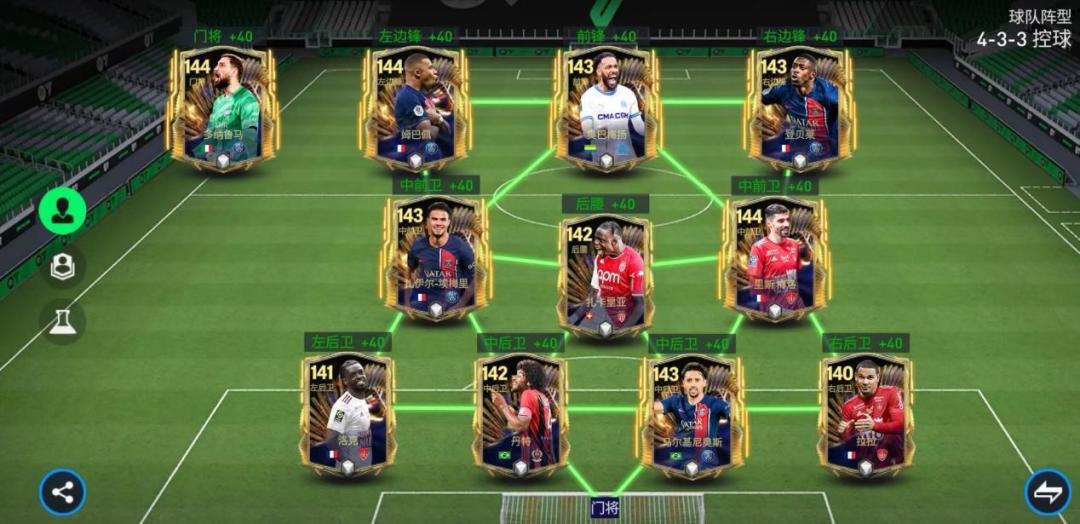 各位《FC足球世界》的玩家朋友们,赛季最佳活动正在火爆进行,截至目前,社区、英超、德甲、西甲、法甲、意甲六大最佳阵容已经全部揭晓,今天的FC大师兄系列,我们就一起来看一下,由赛季最佳法甲球员组成的队套实力如何吧! 阵容方面 首发阵容(4-3-3控球) 前场:姆巴佩、奥巴梅杨、登贝莱 中场:埃梅里、扎卡里亚、里斯·梅洛 后场:洛克、丹特、马尔基尼奥斯、拉拉 门将:多纳鲁马 实战打法-进攻 进