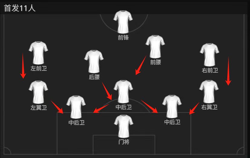 实战打法-防守 防守端,433阵型的中路没有明确的位置划分,三人都是中前卫,需要玩家根据球员特点进行职责分工,另外边后卫需要适当扩大活动区域,提前给对手的边路突破施压。 在人员方面,防守端核心球员包括索博斯洛伊以及范戴克。索博斯洛伊身材强壮,能在中场担任一些拦截、封堵的工作;范戴克站位稳定,地面对抗强势,争顶解围干净利落,是名副其实的后防统帅。两翼的阿诺德和罗伯逊本身就有不错的机动性,所以也可以在