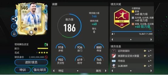 推荐球员:梅西 右边锋位置选用了梅西进行客串。梅西本位是影锋,天赋配备了狙击手,对他的加速、射门、远射、抢点、盘带五项数据提升显著。花式方面,四星花式星级结合高级油炸丸子基础花式,这让梅西的边路突破效率更高。 实战中,梅西的手感灵活,内切打门准度极佳,是一名持球进攻高手。盘带方面,梅西的高级油炸丸子花式幅度不大,能在小范围内连续花式完成摆脱过人,另外,他在冲刺过程中的按键响应也很迅速,变向控球稳定