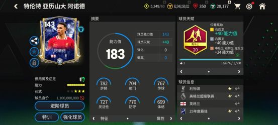 右后卫:阿诺德 25年度最佳活动中推出的阿诺德配备了角斗士天赋,对他的加速、传中、人盯人、铲断、拦截五项数据都有提升。司职边后卫的他基础花式为马赛回旋,可以在比赛中担任球队的边路持球手,在反击时策动进攻。 前锋:加克波 赛博超能足球活动中推出的加克波配备了禁区猛虎天赋,对他的射门、射门力量、抢点、盘带、力量五项数据提升显著。花式方面,身材高大的加克波配备了马赛回旋,搭配四星花式星级,具备同等模型球