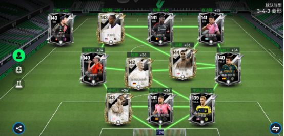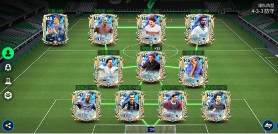 赛季最佳活动中,来自各大联赛的传奇球员持续登场,尽管还有多个联赛章节没有开启,但现有的传奇球员已经让F宝挑花了眼!本期文章,F宝就带兄弟们一起看看由赛季最佳传奇球员所组成的队套,在游戏中的实力如何! 阵容搭配 赛季最佳传奇球员强度不一,基础能力值区间为145-147,这里F宝根据高能力值球员的位置分布,选择了一套433防守系列阵型来进行讲解。 锋线:里贝里、戈麦斯、奥维兰 中场:马特乌斯、奥科查、