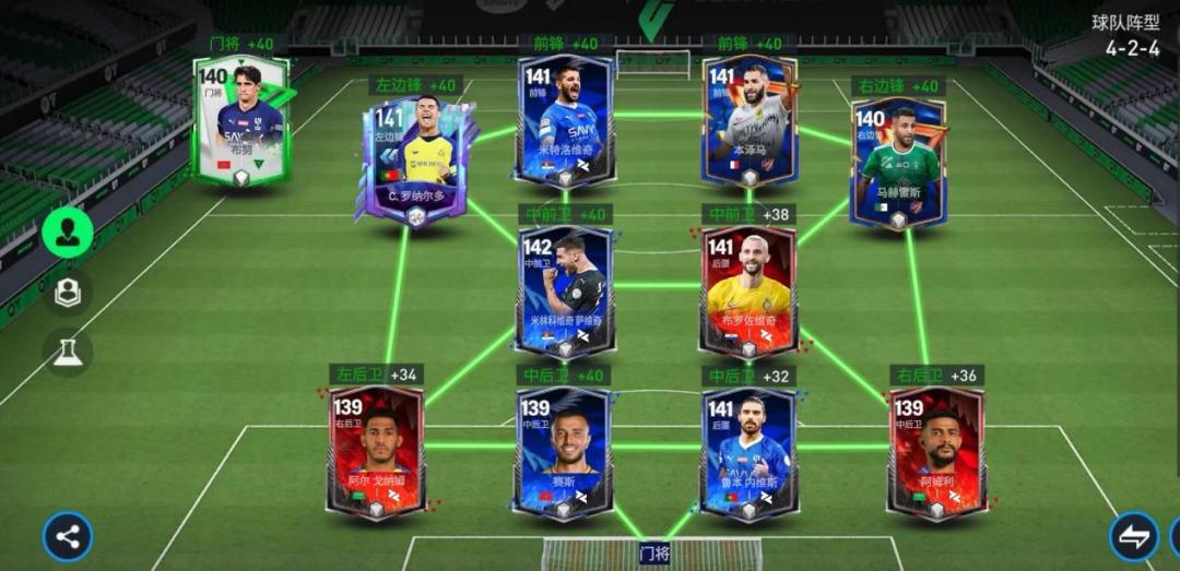 各位《FC足球世界》的玩家朋友们好,去年夏窗转会期,沙特联赛的豪门球队用一笔笔令人震惊的签约赚足了眼球。沙特联赛也从以往的无人问津变成了群星璀璨,今天的FC大师兄系列,我们就一起来看看沙特联赛的顶级球星组成的队套,实力如何! 阵容方面 首发阵容(4-2-4) 前场:C罗、米特洛维奇、本泽马、马赫雷斯 中场:萨维奇、布罗佐维奇 后场:戈纳姆、赛斯、内维斯、阿姆利 门将:布努 实战打法-进攻 进