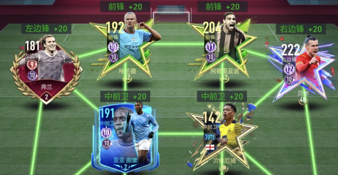 综述: 对于大多数新老玩家来说,433进攻/控球都是极为重要的阵型,一方面对应的球员卡位置出的最多,另一方面攻守有度,433控球阵型由于防守效率高于433进攻阵型,且组织得当自身进攻能力也很强,当前版本优于433进攻阵型,后者常常出现禁区前空位无人补,导致中后卫无奈上抢从而留下更大空位。 433控球阵型阵容推荐: 前场:小飞侠天赋边锋(武磊,贝尔)/吃饼前锋(哈兰德,范尼,范巴斯滕)/突破手感好前