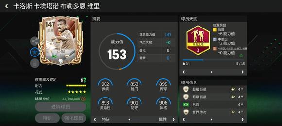 马尔基西奥/迪马尔科/麦克托米奈呈倒三角站位,马尔基西奥负责组织调度,两侧中场兼顾边路协防与内切进攻,形成“控球+推进”的双核驱动贝尔/姆巴佩边锋均具备高能力值,适合执行“下底传中”或“内切射门”战术,尤其在对方防线压上时,可利用速度打身后。中锋卢卡库可作为前场支点,接应中场直塞或边路传中完成最后一击。