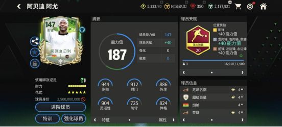 影锋:阿尔迪 贝利球员天赋:强力锋霸(加速、射门、抢点、头球、力量)花式配置:五花高油耐力:9格身高体重:1.74m、67kg攻防效率:中等+中等实战表现:在 41212 边路阵型中,阿尔迪贝利在前腰位置堪称球队进攻的灵魂人物。他跑位灵动,总能巧妙地出现在接球的最佳位置,利用出色的控球技巧,在密集防守中牢牢护住球权。面对对方中场的凶狠逼抢,阿尔迪贝利可以凭借摇杆和高油花式轻松摆脱,随后