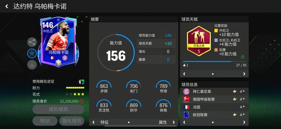 上周四,《FC足球世界》更新上线了欧冠联赛阶段团队2球员,本组球员中,有两位中后卫深受F宝的喜爱,毕竟大家都知道,F宝选择中后卫往往最看重的就是防守可靠的大块头!本期文章,我们就一起来点评一下乌帕梅卡诺、科内特这两位中后卫的游戏内表现吧!马奎尔乌帕梅卡诺目前效力于拜仁慕尼黑,他已经帮助这支德甲豪门斩获了多项冠军荣誉。国家队层面,他与下文科内特所组成的后防线也为“高卢雄鸡”保驾护航。球员卡面配