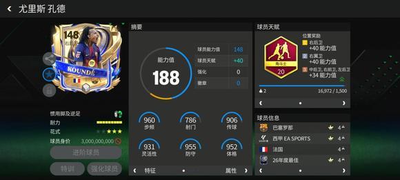 在FC足球世界里,每一张球员卡都承载着独特的回忆与荣耀。全新上线的年度最佳活动中,法国球星孔德推出了一张全新球员卡。作为目前巴塞罗那和法国国家队的双料核心右后卫,孔德在过去一年的发挥可圈可点。今天就F宝就带大家一起探寻一下年度最佳活动推出的这张148能力值孔德球员卡,卡面背后的故事。01 卡面形象来源北京时间2025年9月29日,西甲第7轮的一场比赛在巴塞罗那与皇家社会之间展开,巴塞罗那在新