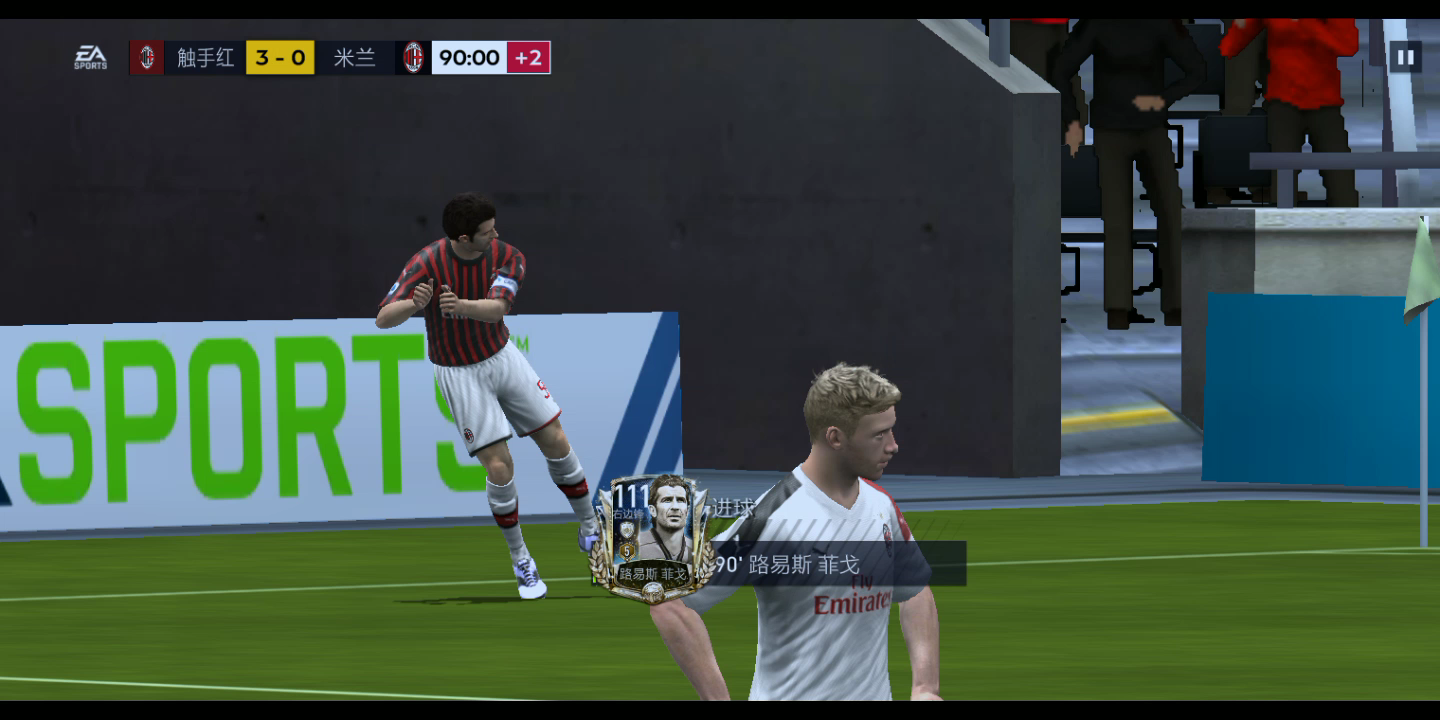 我的菲戈传球到中场,对面后卫把球铲进球门,就进球啦