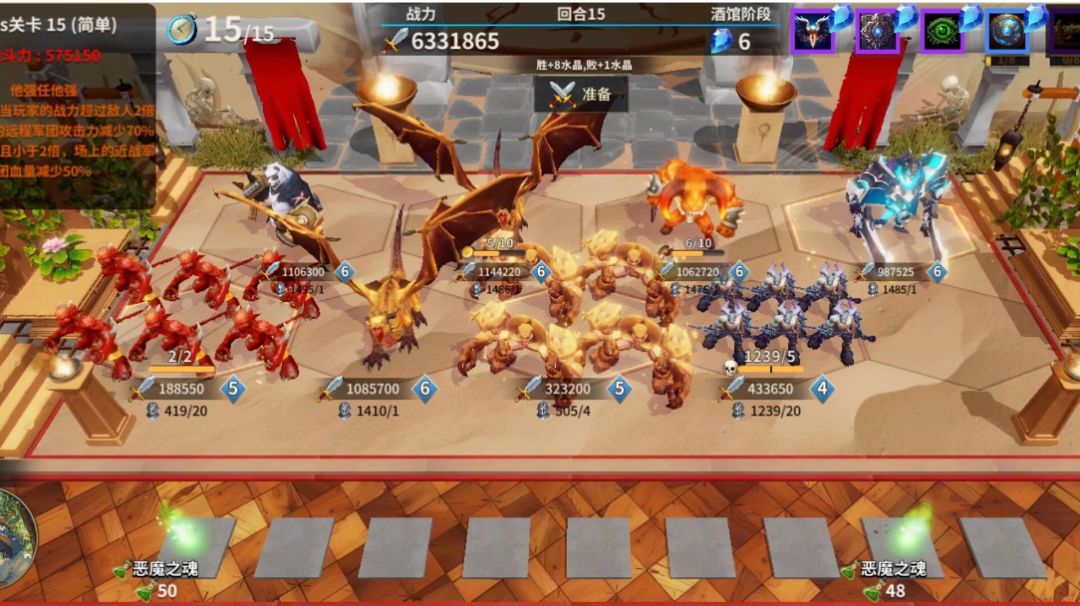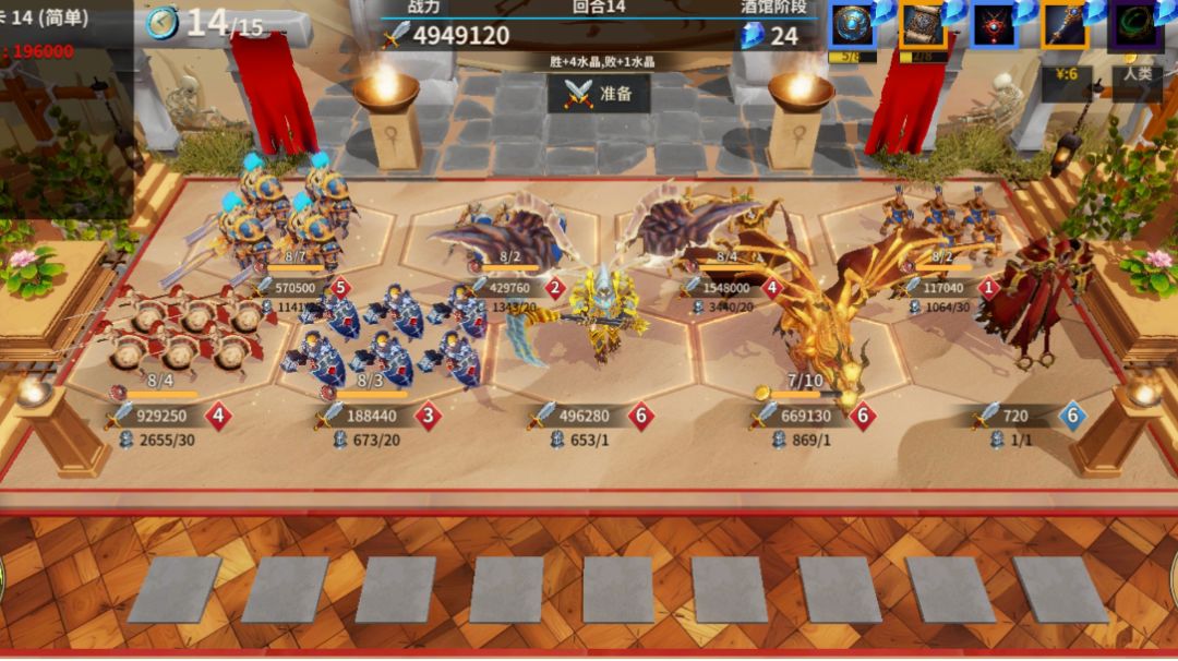 各位看官老爷万福金安,把把天胡,把把鸡! 酒馆战争作为一个策略性战略游戏,其中如何合理使用仅限的资源,取得最大化的收益尤为重要。整局游戏大致划分为三个阶段:前期决定方向,中期确定阵容,后期发展实力。 当然,想要一直连胜和一直连败是一件不容易的事情,当实际情况将你推入了第三个方向你该如何破局呢?(一胜一败) 1,三回合神器商店阶段尽可能的不购买任何神器,法术。将水晶留着吃利息,等6回合的时候用