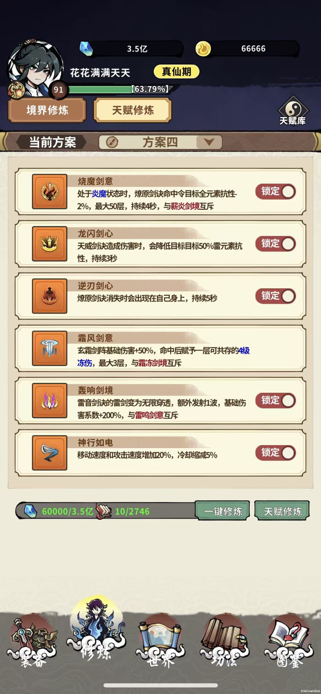 各位道友好,我是花满天。凝霜陨落,何去何从,为了守护剑道,重铸剑修荣光!特授此神功秘籍,强度虽不能赶超之前凝霜,亦能有5层功力,话不多说,开始醍醐灌顶! 一、天赋篇 太乙天赋: 核心天赋:轰响剑境 烧魔剑意 逆刃剑心 龙闪剑心 偏进攻可选:虚铁剑意 偏防守可选:霜风剑意 可带近战限定防御雕文 最后一个天赋:首选神行太保 或其他输出类天赋 Q:龙闪剑心只能持续3秒,没有狂轰剑境不能全覆盖怎么办? A