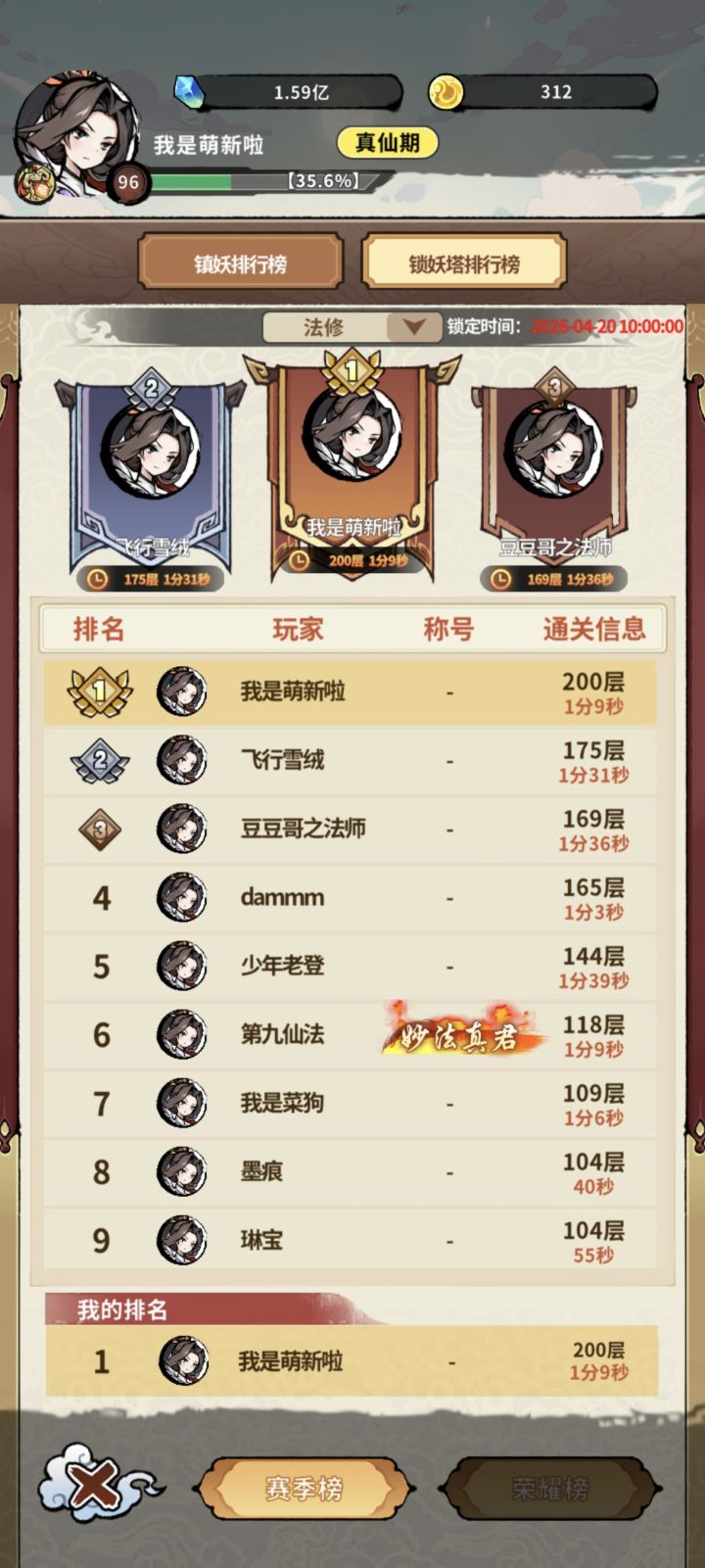 毕业!合影留念!S4首通锁妖塔200层