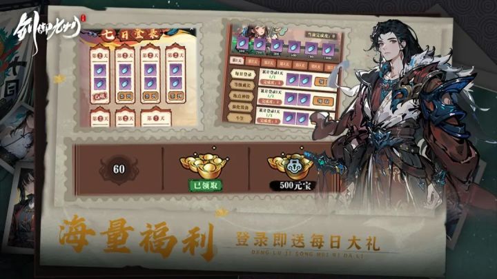 游戏类型:武侠、放置、养成、古风、竖屏、国风、文字测试类型:限量不删档计费招募截止时间:2025/04/12游戏介绍:《剑御九州》是一款武侠风格,高自由度的角色扮演类型的文字MUD类游戏。为了还原一个真实的武侠世界,我们制作了门派出山闯关玩法,江湖帮派拜山玩法,官府缉拿玩法,武林寻宝玩法等数十种游戏常态玩法。并且有大量彩蛋解密任务等着你来