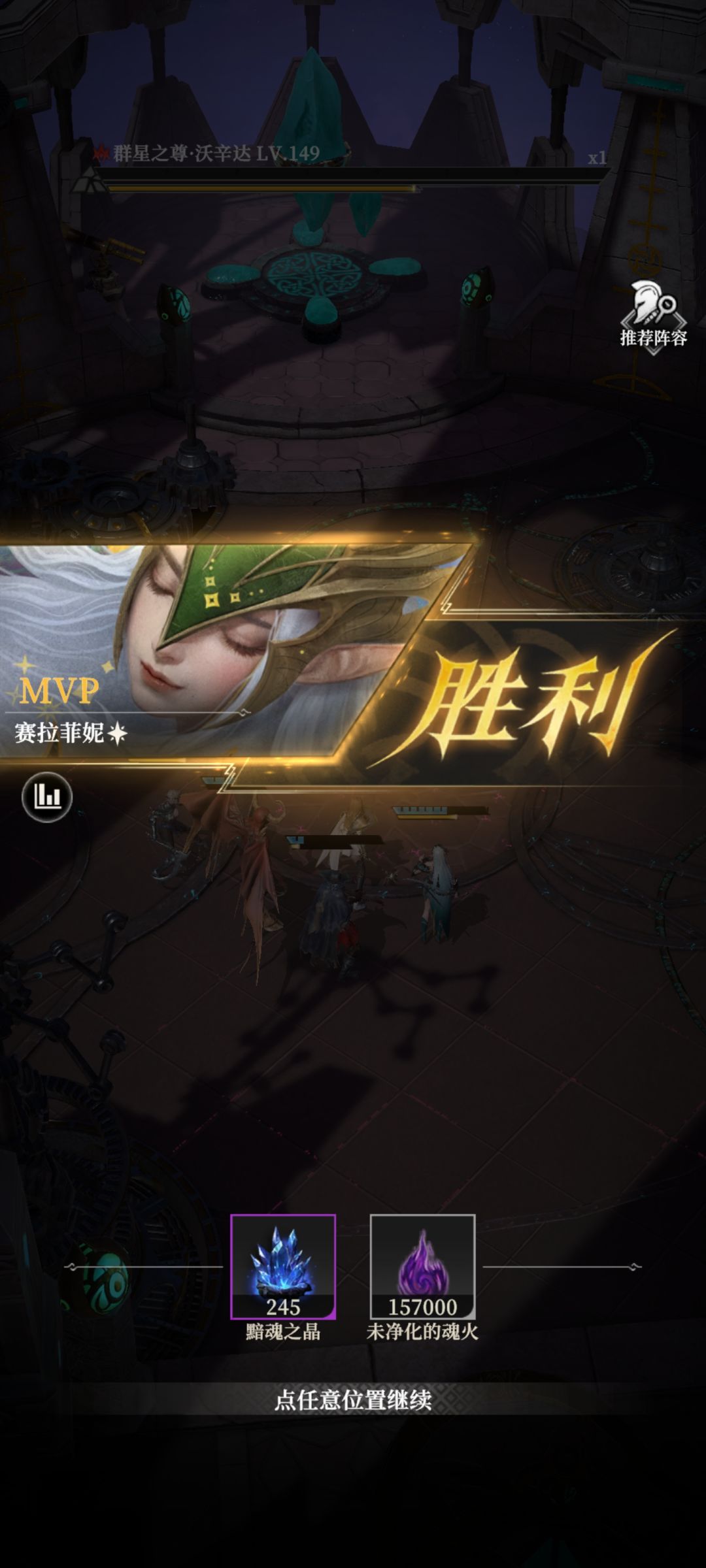 阵容:骨语+莫拉+光奶+奥数+粉碎者+光盾 神力:锤子+治疗 骨语回能套 莫拉天赋2221 光奶回能套,天赋21 奥数天赋22 粉碎者,天赋111 光盾,武器带了专武辉月之息凑伤害 所以英雄除了回能套外,武器都带三把,因为BOSS伤害不高,不触发钟鸣几乎不会嘎,缺输出。 没有带防眩晕头盔,因为带了之后钟鸣控不住了,一个光盾和莫拉正好平衡 奥数我升到20刀契没点天赋,因为输出不够我凑输出的,点了天赋