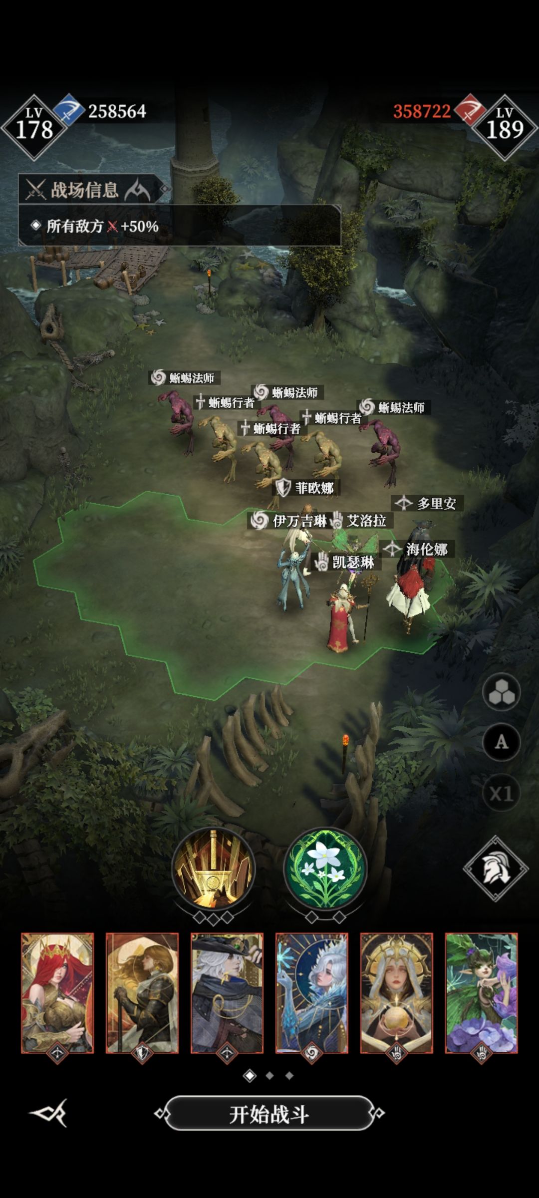 悲剧图镇楼。。。。 我的战力只有接近51W,骨女攻击刚满2W6,看到其他人的攻略,又是一阵绝望[表情_泪目][表情_泪目][表情_泪目]。首先感谢无月,我用的是他的站位,我自己也试过其他站位,但都不是很理想。站位需要考虑舞娘的咒骂能不能覆盖所有怪,怪物瞬移过来后的位置,怪物进攻的路线等等。在这里感谢无月攻略里的站位,让我节省了很多时间,大佬牛逼(破音)。。。。[表情_送花][表情_送花][表情_送花]
