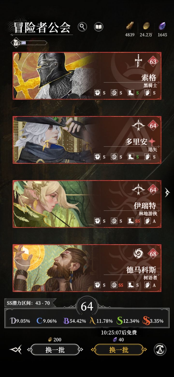 除了阿尔卡因,最低血量了,小骑士和鹿头貌似也不好,列无暇还没招,再过几天招个94潜的看看,估计还得一个多月能到100潜,金币得40-50万之间差不多了,卷已备好,就熬时间了。光盾潜力最低,一直招不到同模板的