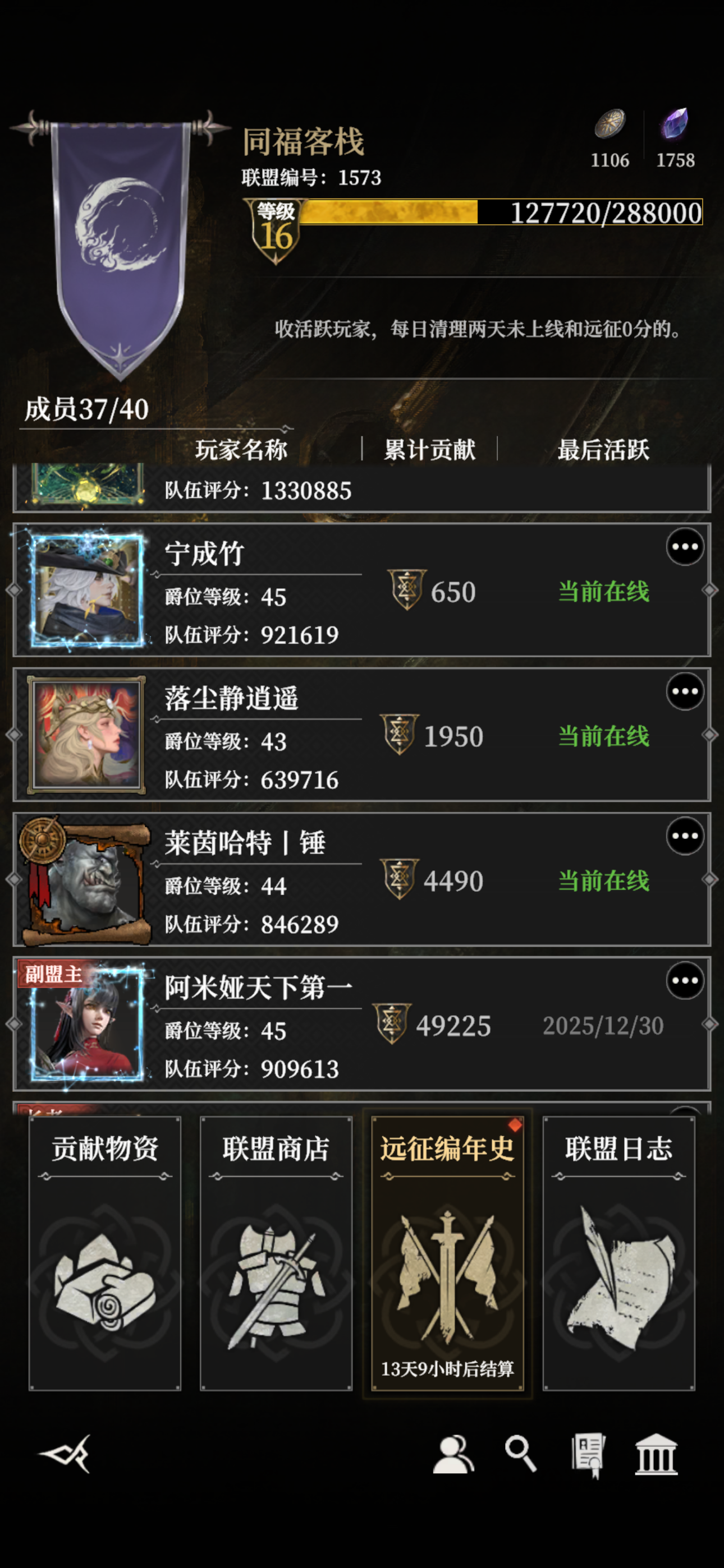 如题,养老咸鱼,以前的能跑完了我成盟主了,找个有活人的盟拿点活动奖励,有意的踢一脚