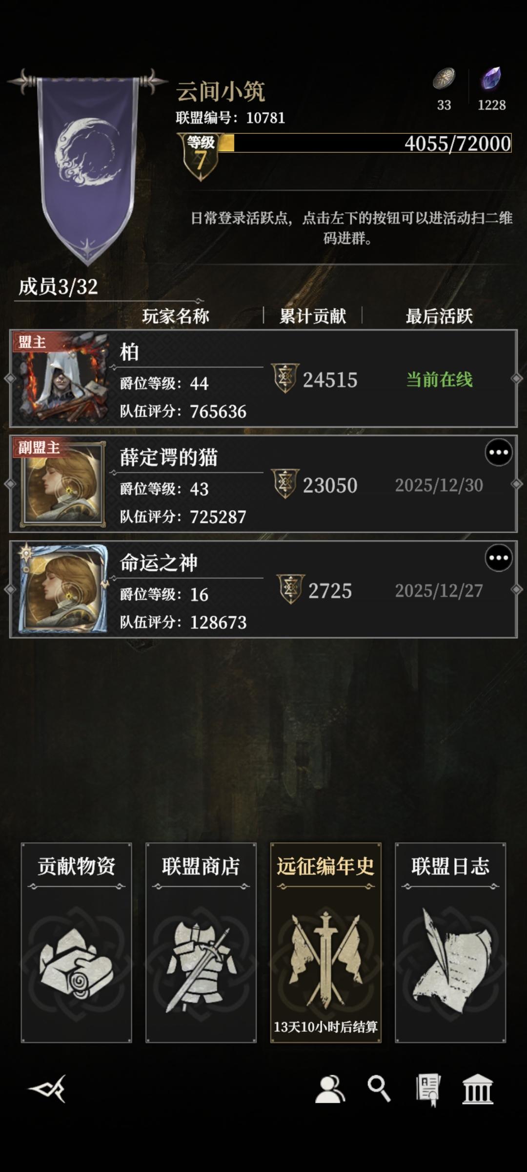欢迎大家来一起做联盟任务呀。联盟名沐风听雨