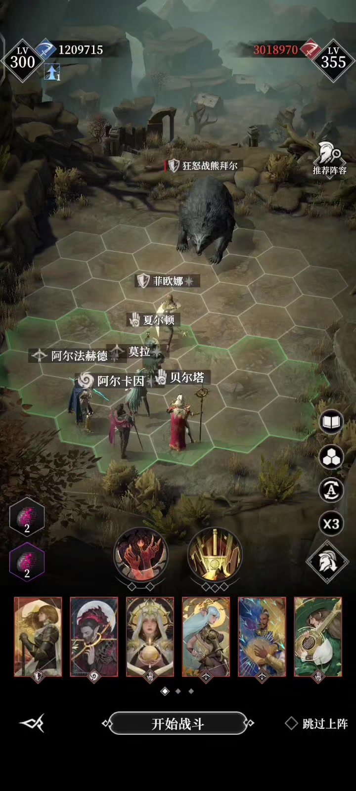 不知道是不是最好的打法,反正排行榜第一。【原理】:1.莫拉站唯一贴身位,加攻速。2.输出环绕亲王,灼日猎弓暴击周身一格加伤害。3.法师普攻可以减少boss双抗。4.沙女吸血加护盾,可以抗伤站到最后不死。5.众所周知,亲王吃辅助,辅助越多伤害越极限。6.扈从站身后,身前亲王就是第一守护位。扈从点了攻击距离加1天赋。矮子避开亲王周身加伤位。7.熊女的熊会占一个亲王身边的位置,如果站沙女