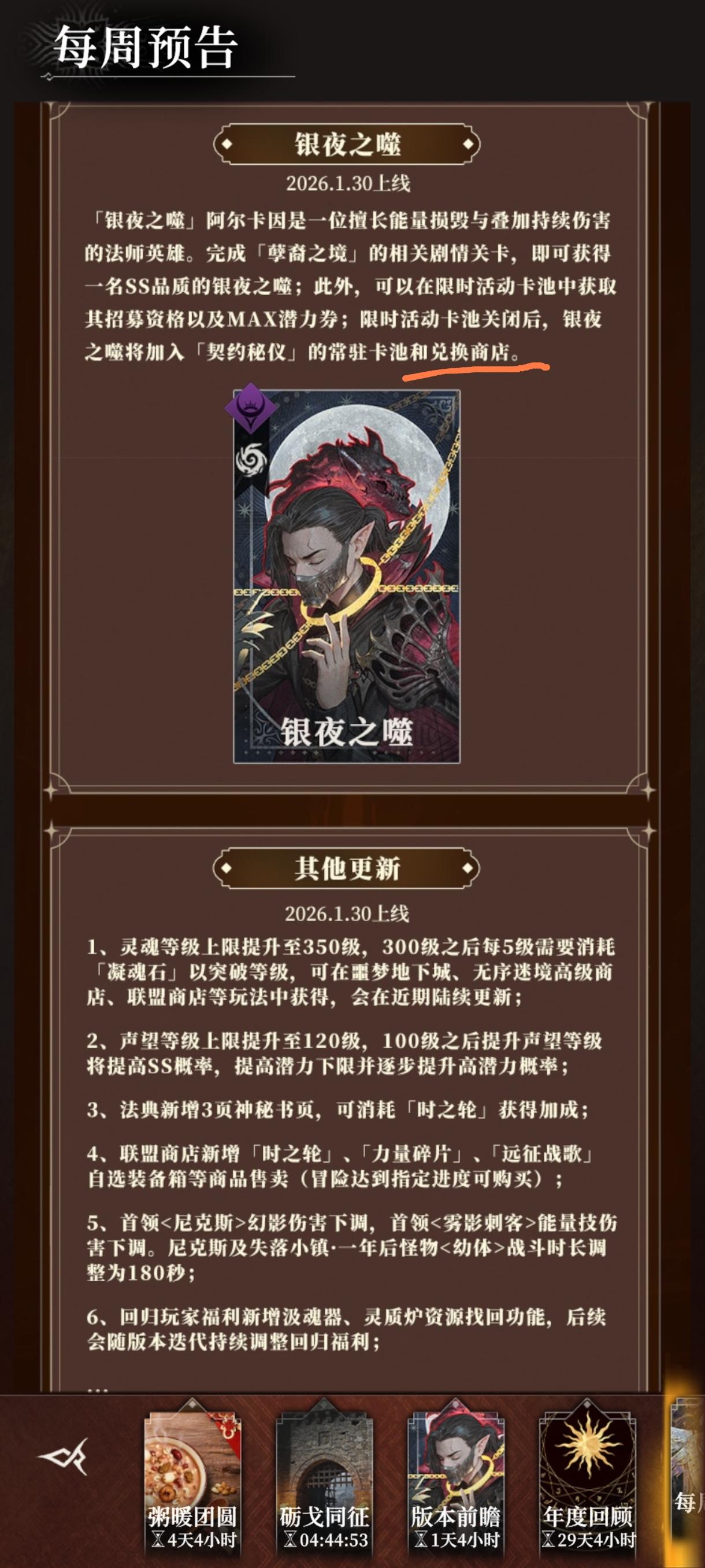 银夜之噬的解锁招募条件方面,今天的公告比昨天的多了“和兑换商店”五个字。看来正式上线之后,不需要充值抽奖,也能通过秘仪商店兑换解锁招募券获得新英雄了。能听取玩家意见,知错能改,请继续保持。