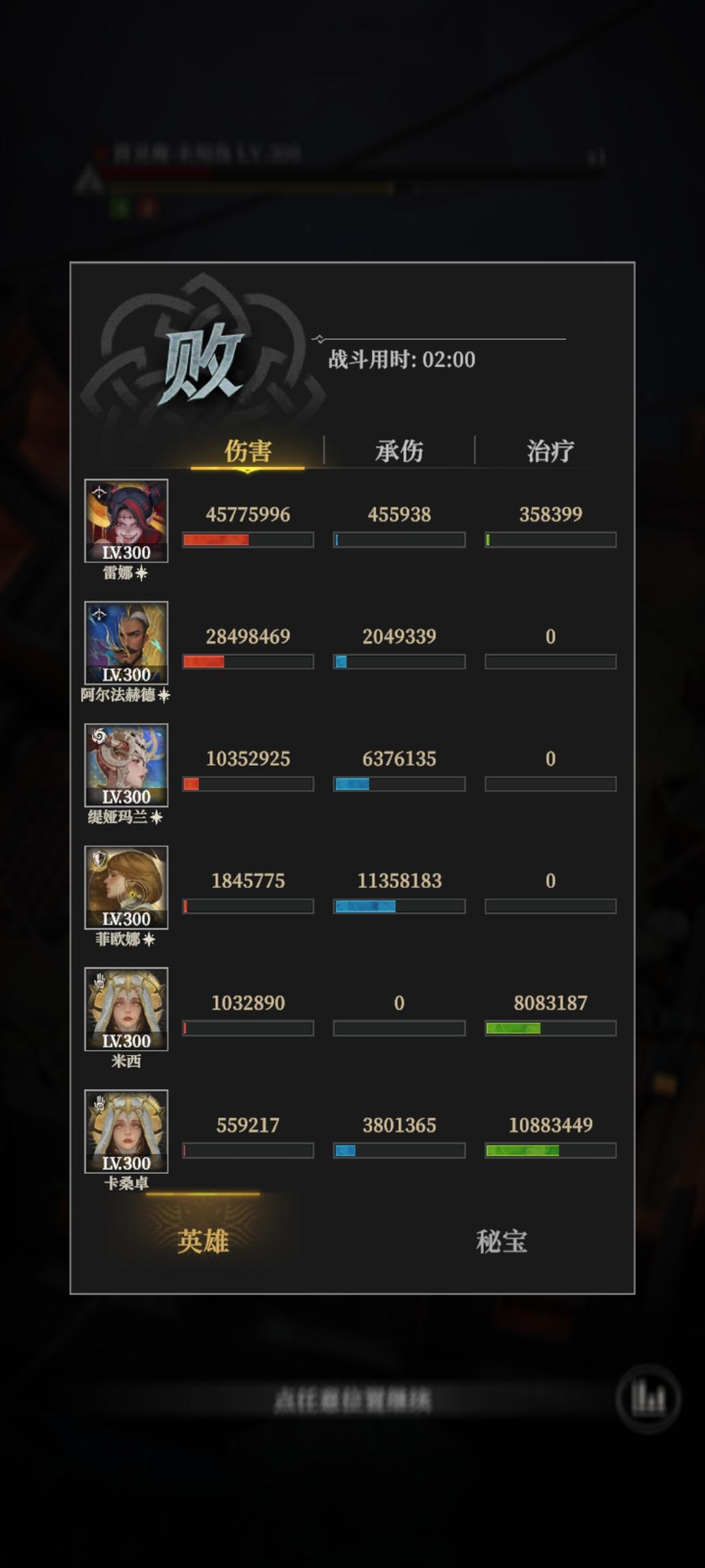 前提是buff要的足够好且雷娜点的是减治疗,最好还有恶臭壶的压治疗,我雷娜点的是4-1,打不完了