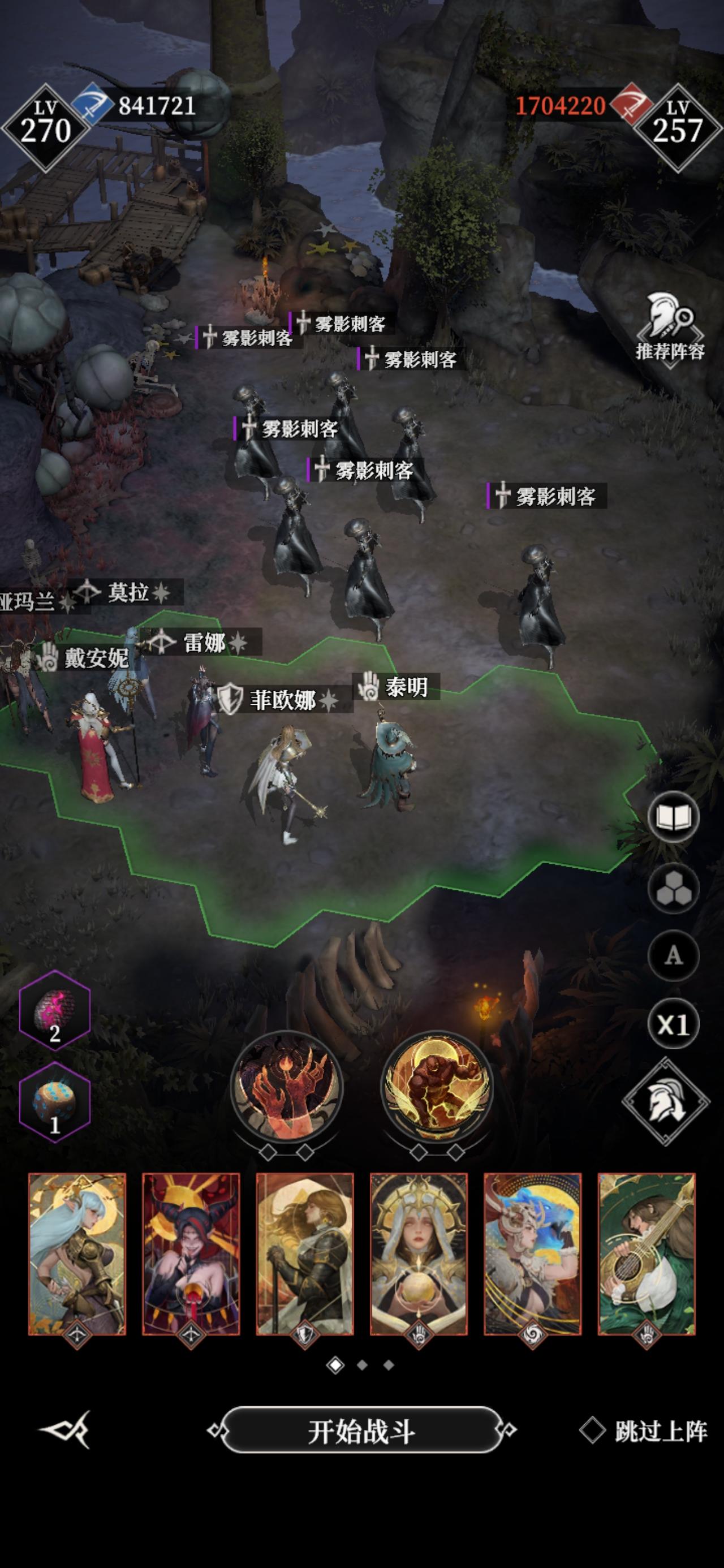 整体难度比七八九低。150万以上,应该随便过。下面写的打法,可以参考。有其他打法,各位可以尝试一下。一,卡25万单角色面板二,两个六触手关,有点恶心(伤害高,被动回满血),用夜莺得凹(我的攻击力4.83万,比较极限,)或者六黑骑(没有尝试,感觉比较容易)。六触手一:夜莺(2111):渊兽刀,回能刀,吸血锤,吸血套。下图熊女的站位换到蕾娜前面。六触手二:这个比上面的恶心,站位是分散的。这