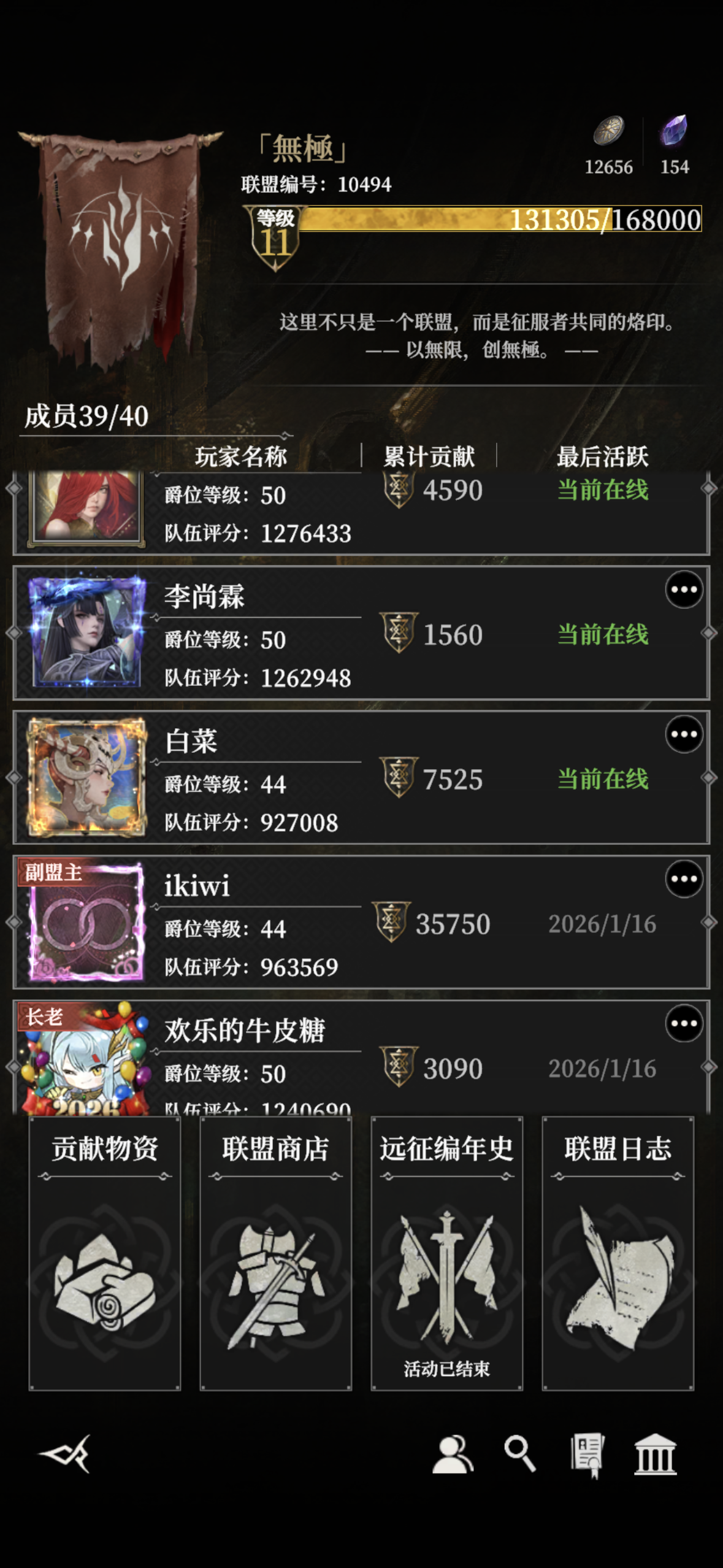 联盟编号10494「無極」招人。 战力百w左右 长期保持玩的来。