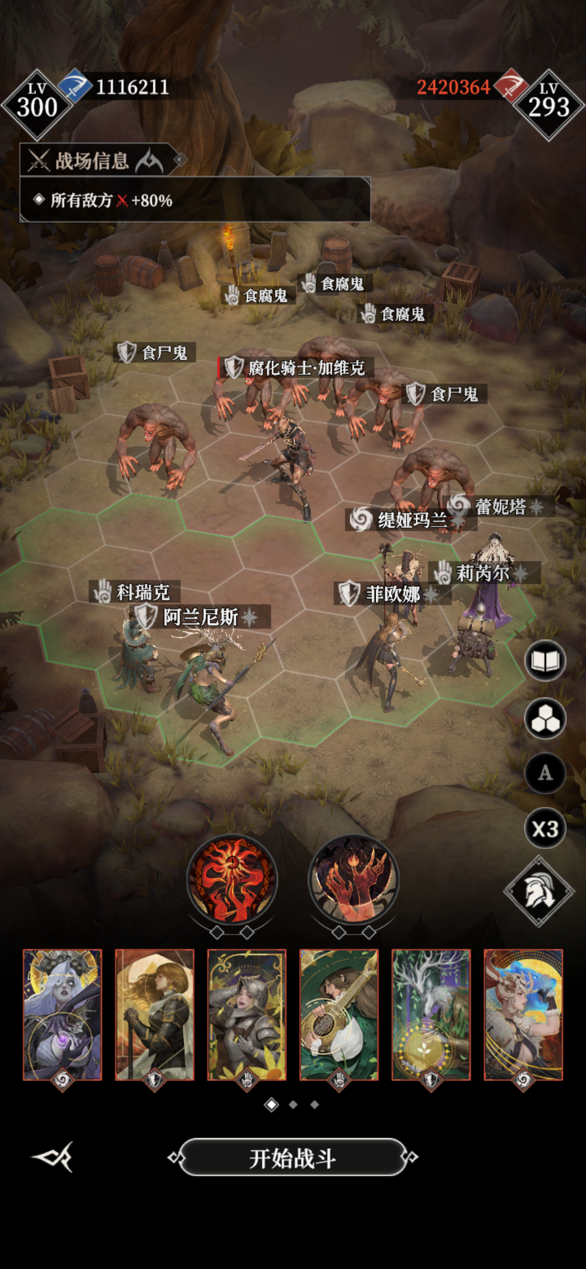 整体难度比七八九低。150万以上,应该随便过。下面写的打法,可以参考。有其他打法,各位可以尝试一下。一,卡25万单角色面板二,两个六触手关,有点恶心(伤害高,被动回满血),用夜莺得凹(我的攻击力4.83万,比较极限,)或者六黑骑(没有尝试,感觉比较容易)。六触手一:夜莺(2111):渊兽刀,回能刀,吸血锤,吸血套。下图熊女的站位换到蕾娜前面。六触手二:这个比上面的恶心,站位是分散的。这