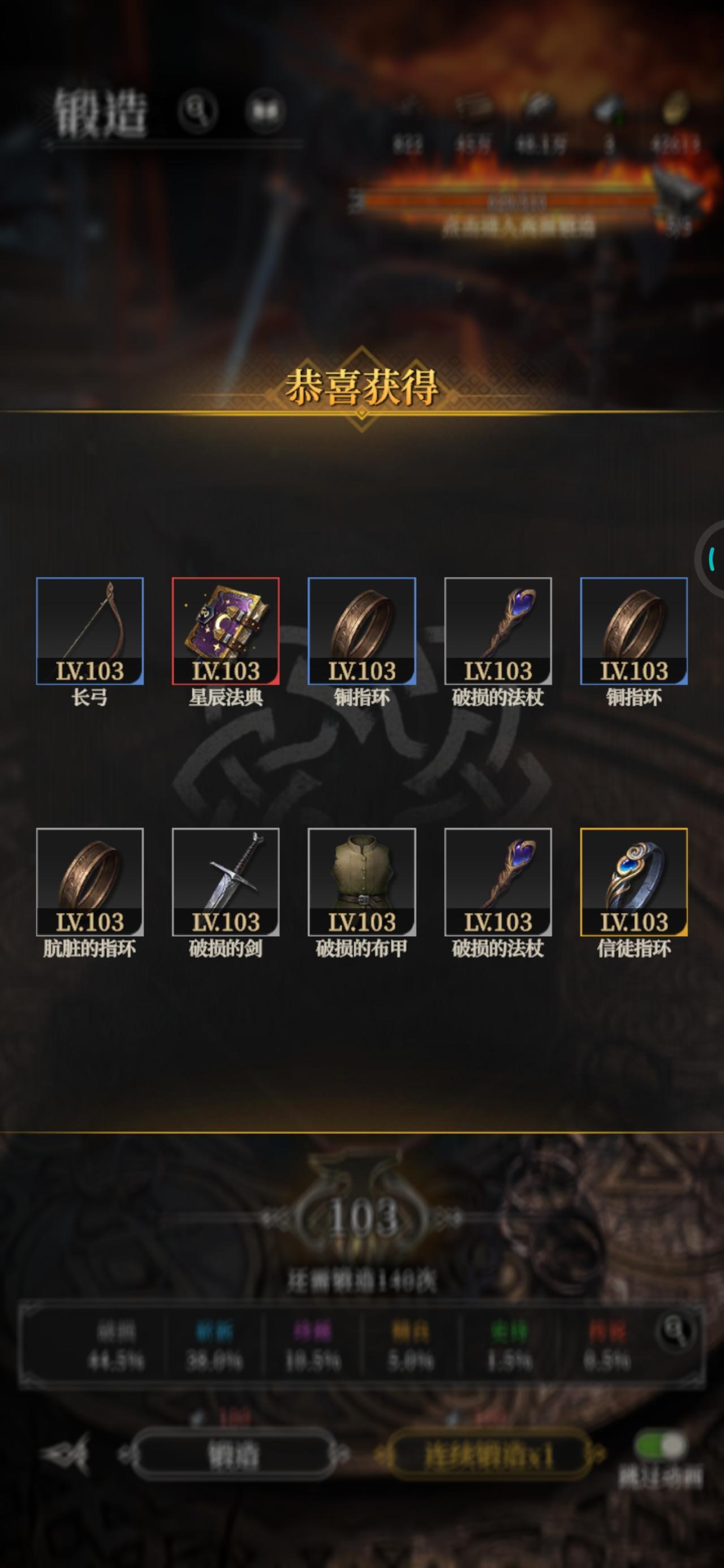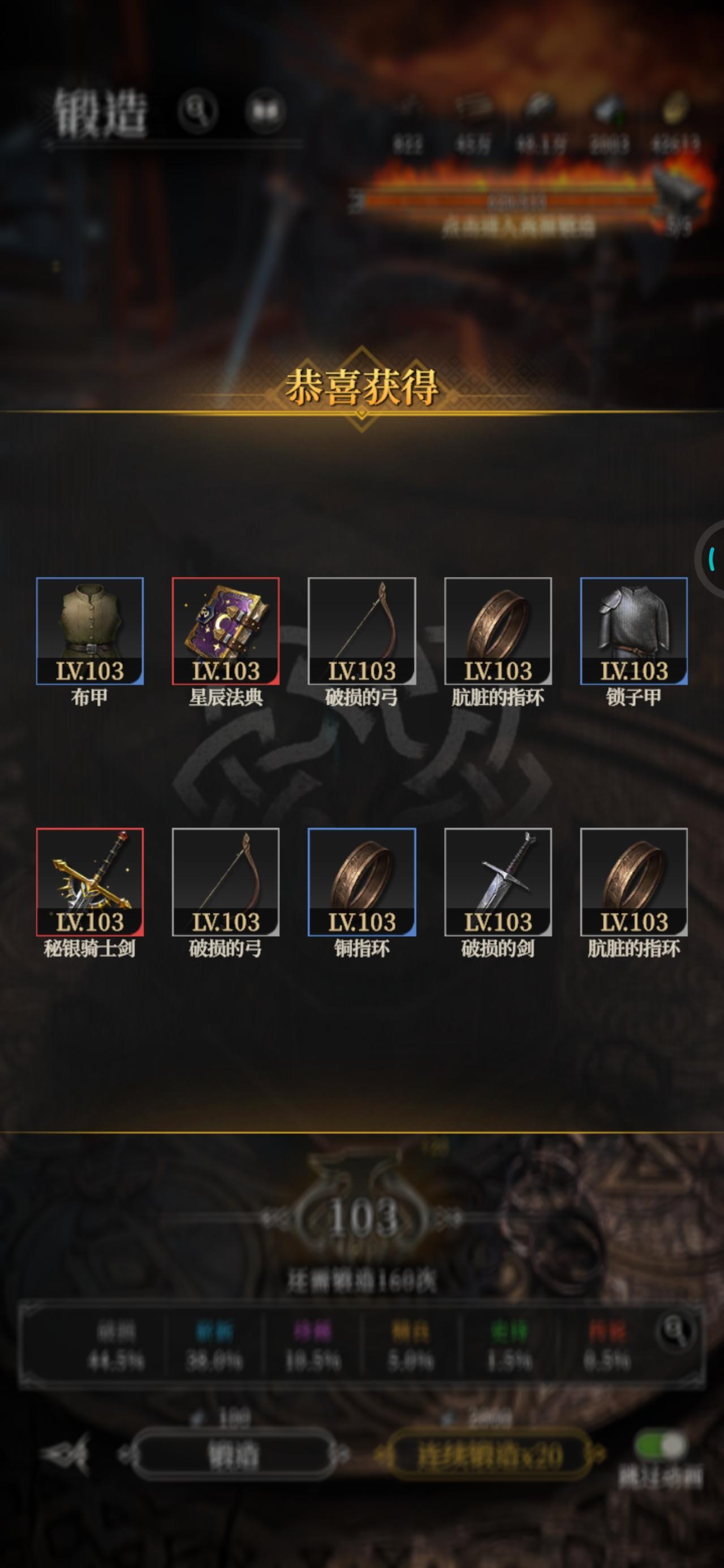 今天锻造运气爆棚了,40次锻造出3次红装