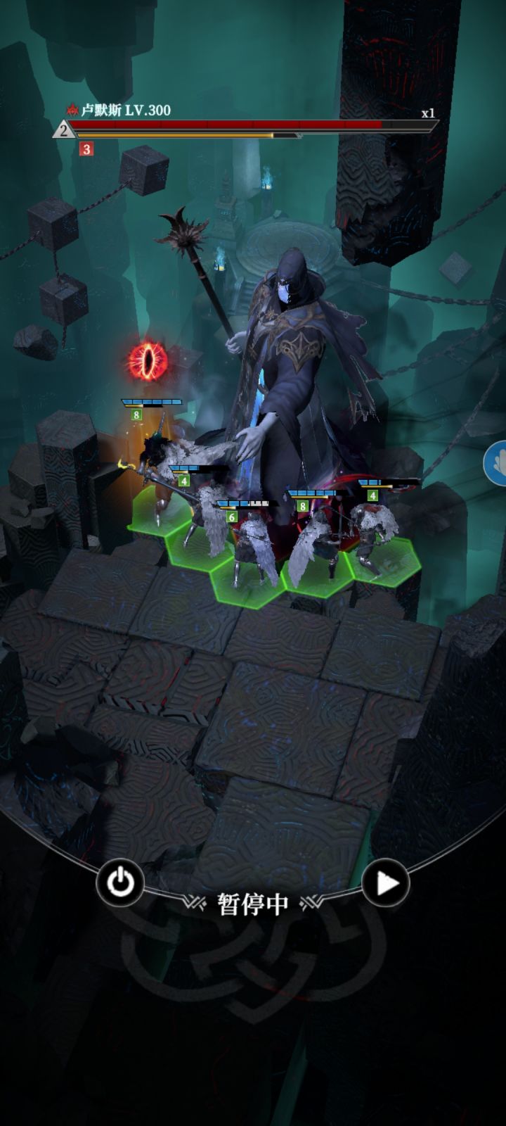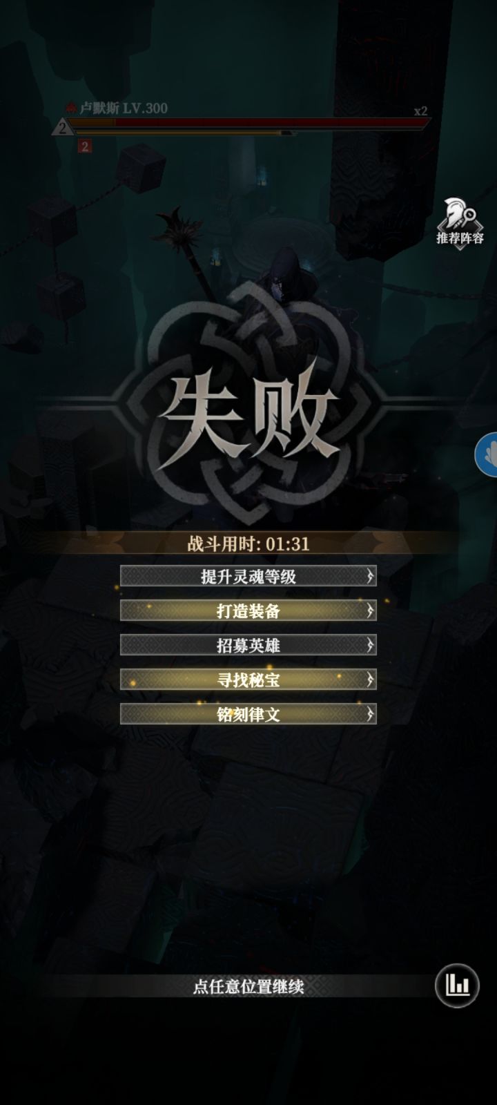 先说威力7.5,破甲14.3。这个boss只能上物理系攻击角色,如图上就行。(你要上法伤角色你可以试试)夜魅天赋2222,烈无暇2122,护从2112。神力前五管血不要放,后五管血随便放。看完了就打去吧。