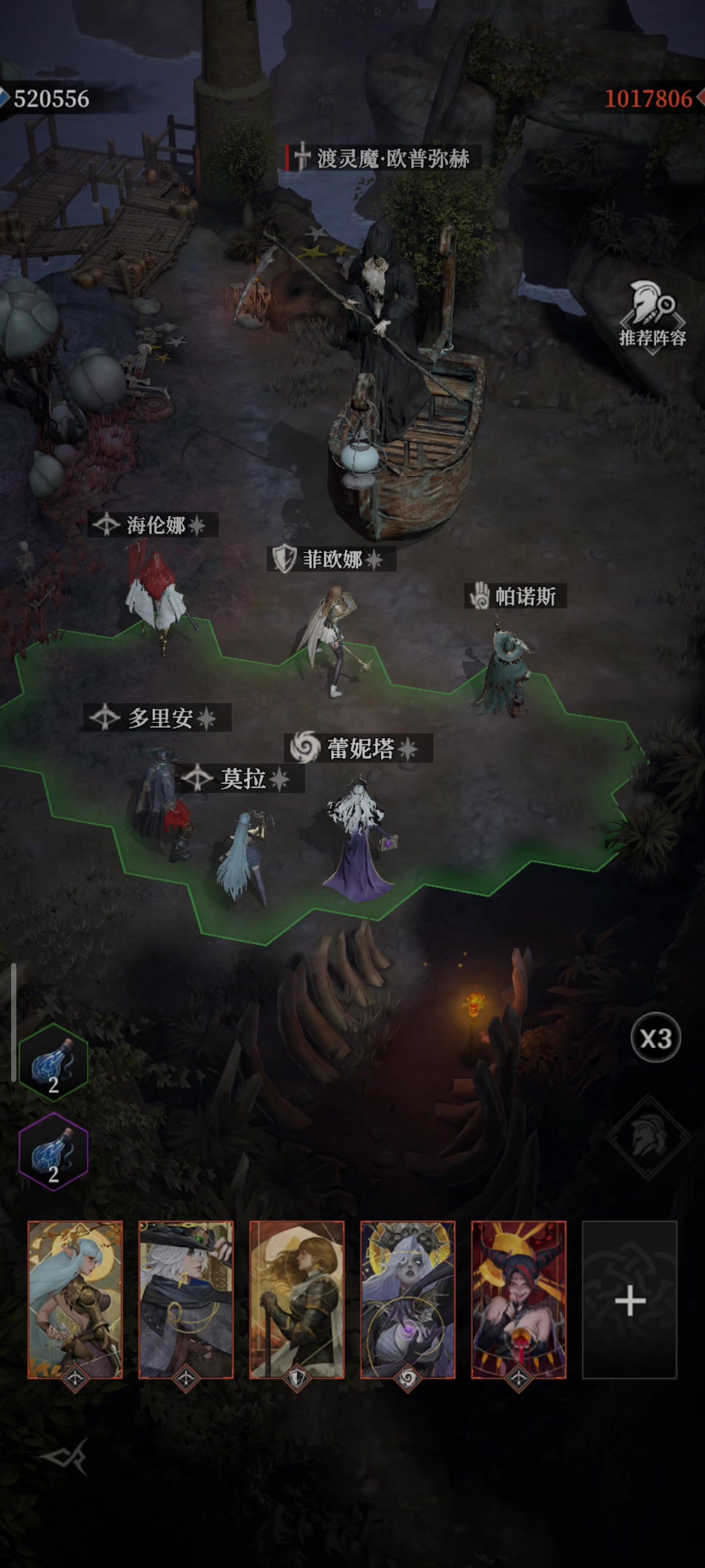 不想用剑圣凹了,采用5黑骑加鹿头的经典打法,夜莺这图用不了