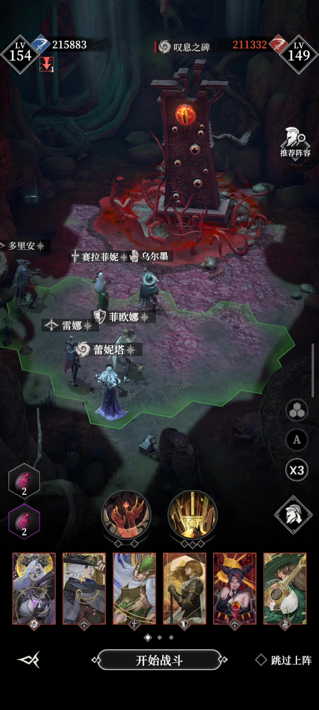 超级五保一,夜魅30级天赋吸血套,其余5人都是5级天赋,奶妈凑了个回能套。 图下方还有个营地,同样的打法,比上面这个简单