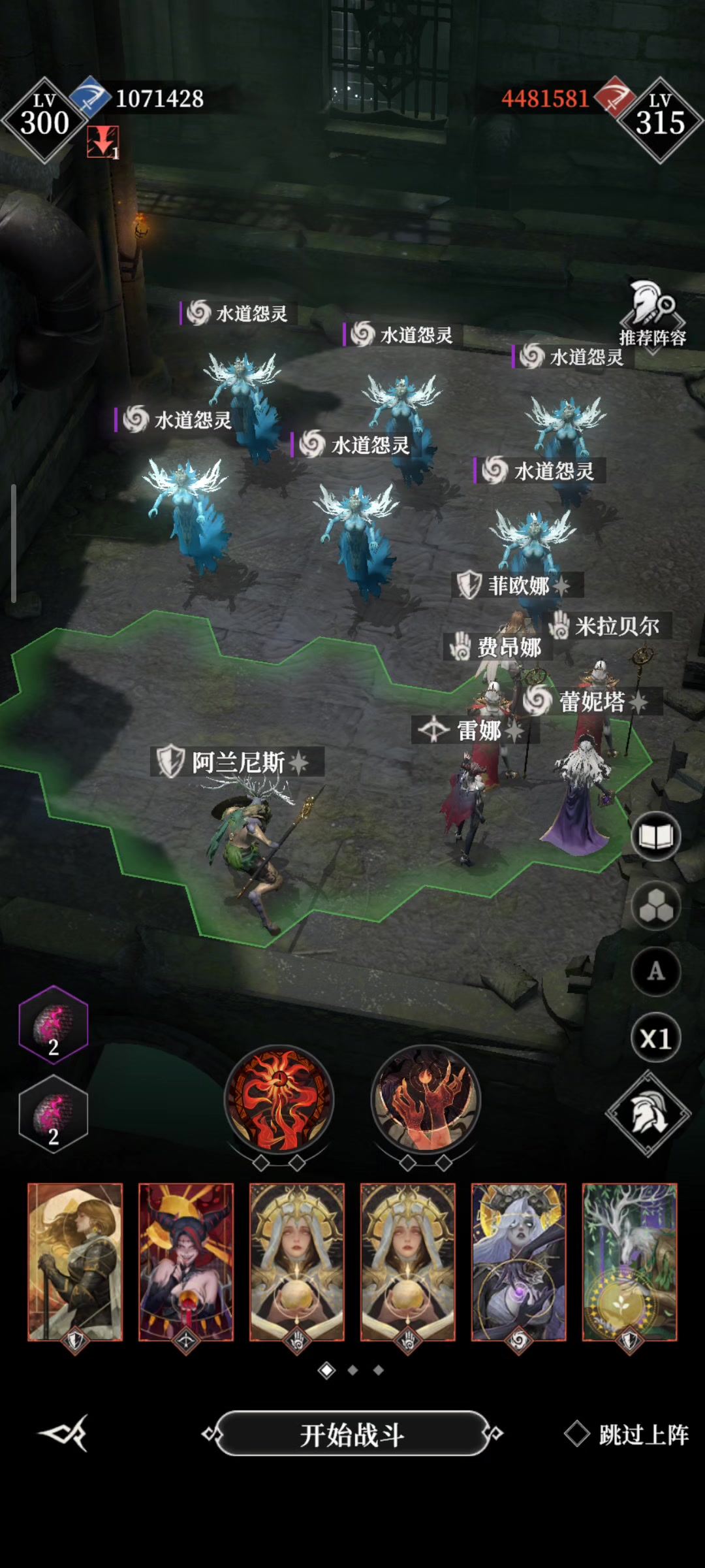这个图主要核心就是要续隐身,而且不能太早续,最好是控制在每个怪只剩最后两三秒隐身结束再续,就得要看隐身时间和给狂热神威的时机,然后左1和右1这两个黑骑士用的是摩尔套,这两个是打球和打小怪续隐身的核心,输出要比其他三个要高一点,中间三个是吸血套 ,想要让恶魔刷在右边的话,那就是右边的球要打的稍微快一点点,需要微调装备,以及站位,每一次调装备和站位会导致你刷恶魔的位置不一样,如果站位已经站的不错了,伤