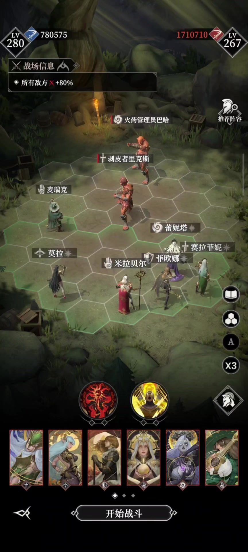 唉呀妈呀,终于过了,卡死我了[表情_捂脸哭] 莫拉3.4威力,莫尔多司(有氪金弩)+连弩 剑圣3.5威力闪避流天赋,吸血套+吸血锤 骨法3.0威力回能套,骨法不怎么用了就没弄装备,这里她的作用就是墓碑吸引炸弹,还有卡剑圣位置让剑圣去打后排,后排BOSS平A是范围伤害,这样卡位可以让后排普攻只打到剑圣一个人。 这个站位前排BOSS打完光盾以后大概率会从骨法开始打,让莫拉输出最大化。不过最关键的还是看