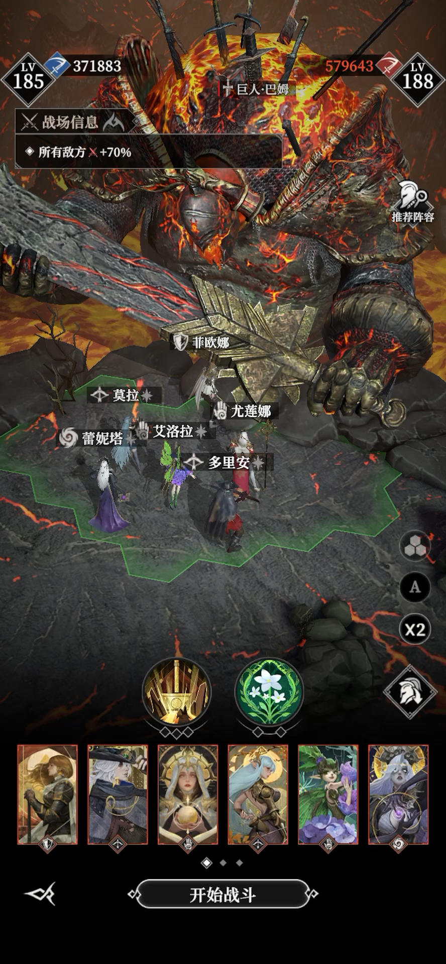 荆棘之王血量少,思路就尽可能在短时间打出控制链与输出。 上阵英雄神力站位如上,缴械或者光弓主输出,最好的装备给主C,海伦娜点出三次无敌,扛不住光弓也可换绿弓多抗几下,除了缴械需要能量套以外,其他随意。#地下城堡4骑士与破碎编年史