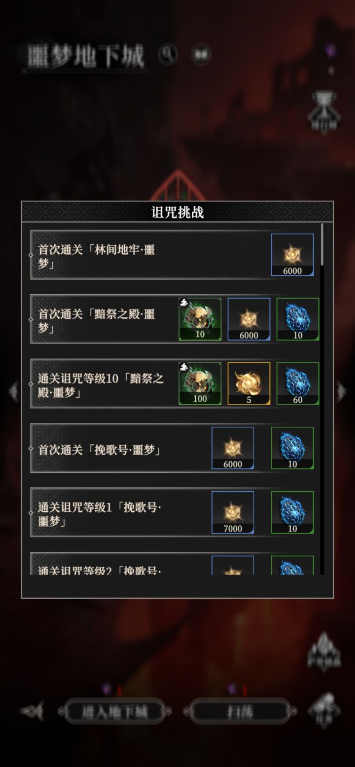 目前威力6.0左右光盾塞雷娜套、输出摩尔套、光奶弗洛瑞尔套、鹿头/扈从磐石套。【林间地牢·噩梦】5000分难度10需要注意的是第十三层打不打怪都是给300分,如果选择打,buff不要选择“护界棱晶受击次数-2”。【黯祭之殿·噩梦】5000分难度10要拿奖励,就在第六层选择战斗拿到钥匙。最后boss有全场伤害并施加持续掉血debuff,建议拿护界棱晶次数增加buff,或者带锤子控到死。【