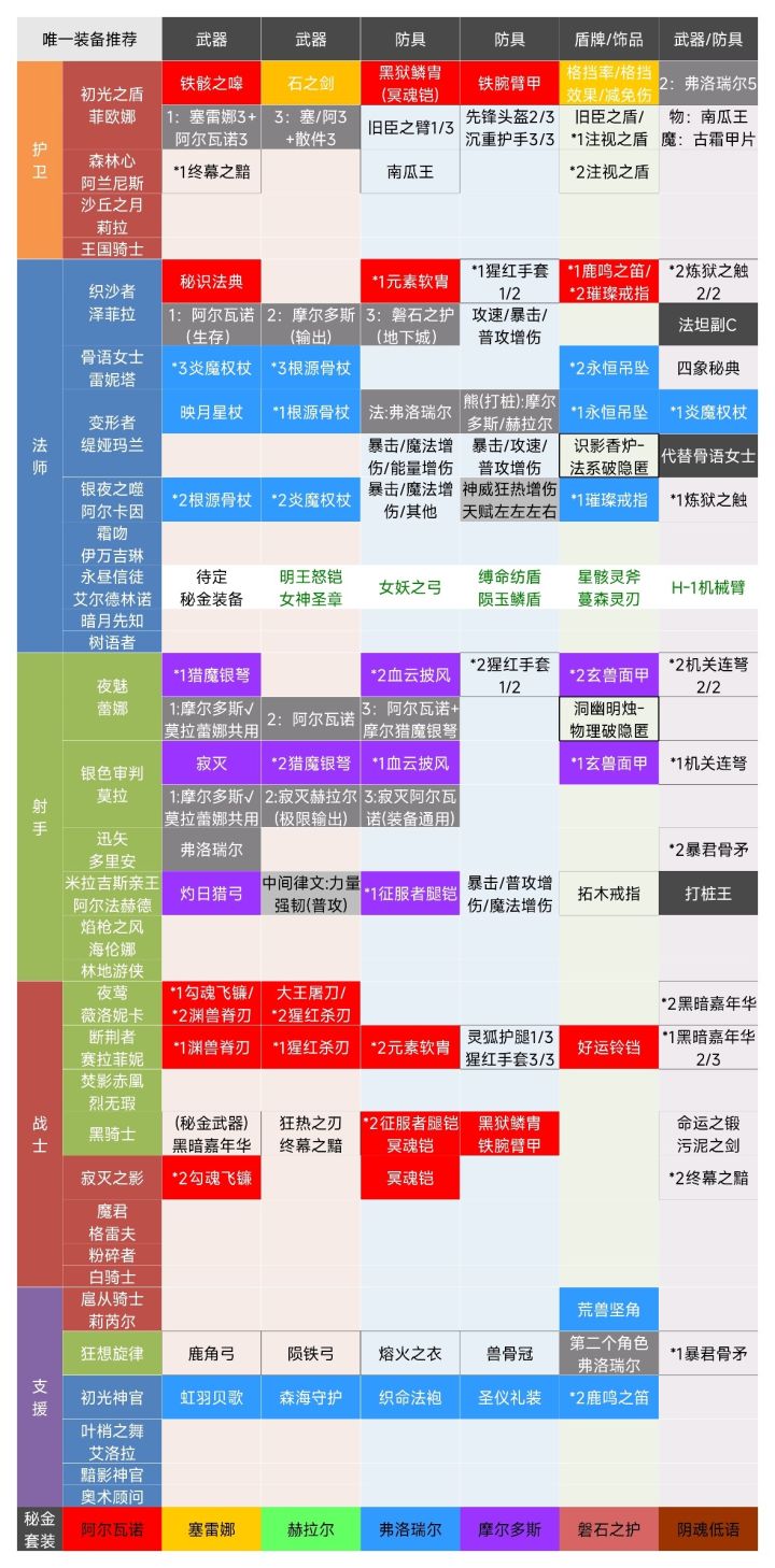 (2.19更新装备推荐)图2——你们要的装备重铸消耗图来了,拿走不谢留下赞!(究极忍者玩法可以节省几十万铁,推荐铁匠铺120级或133级再升级唯一装备和兑换秘金装备,如果你能忍得住。)图1——全职业唯一装备、秘金装备,基础英雄推荐、套装推荐!(配得上穿唯一秘金装备的就是主力阵容。)(装备及套装搭配,欢迎各位大佬给出指导意见!)图3——冒险者公会升级消耗图!图4——铁匠铺升级消耗图!图5.