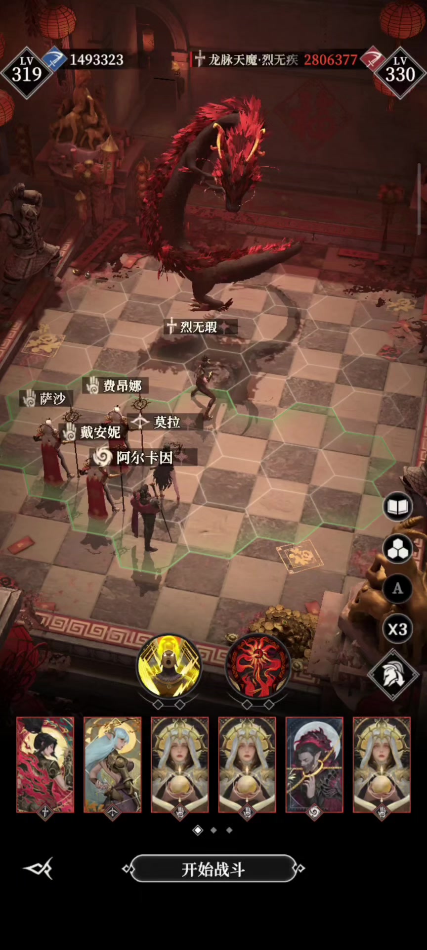 *莫拉:摩尔套,6.2威力,特殊装备:寂灭枪+连弩+猎魔弩+蜡烛 *凤凰:摩尔套,6.2威力,特殊装备:蔓森灵刃(给莫拉增伤和吸血) *1号奶妈(站位靠前):散搭/回能/塞蕾娜,特殊装备:虹羽贝歌 *2-3号奶妈(站位靠后挨打):散搭/回能/塞蕾娜,特殊装备:元素软胄,这两位最后的装备栏穿衣服 暗法:塞蕾娜套 三位奶妈的回能速度要调一下,不要一起放技能,容易给一个角色过量奶,相互之间回能差10最