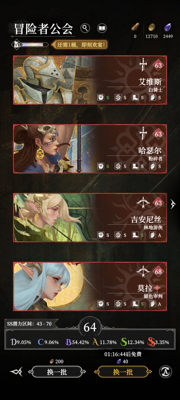 免费钻石刷了一把,出来4个SS,惊呆了,招募了一个后才想起来截图,谁来算算这概率是多少