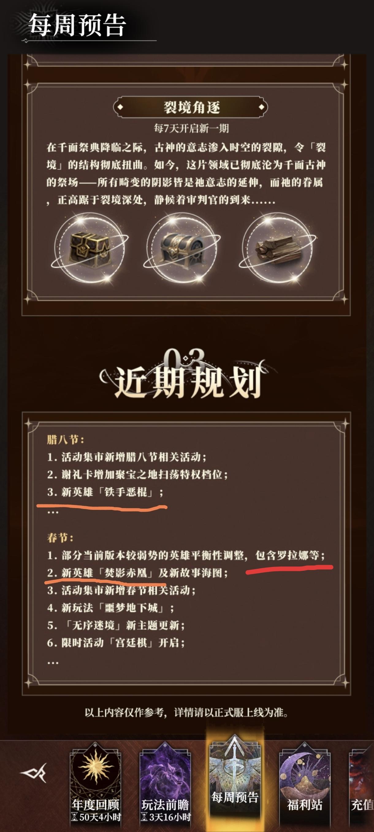 你们看,堡4的设计师还是能听玩家意见的。这不就要加强罗拉娜了嘛。态度至少没问题,这一点没得黑。至于加强完能不能上场,那就是数值策划的业务能力问题了。被指责业务能力问题,总比被指责态度问题,要好一点对吧。起码性质上要轻的多新英雄「铁手恶棍」听起来像个近战,不知道是护卫还是战士。「焚影赤凰」有没有可能会复活啊,毕竟凤凰涅槃嘛。我🦐🐔⑧猜的啊,猜错了别喷我就是不知道新英雄