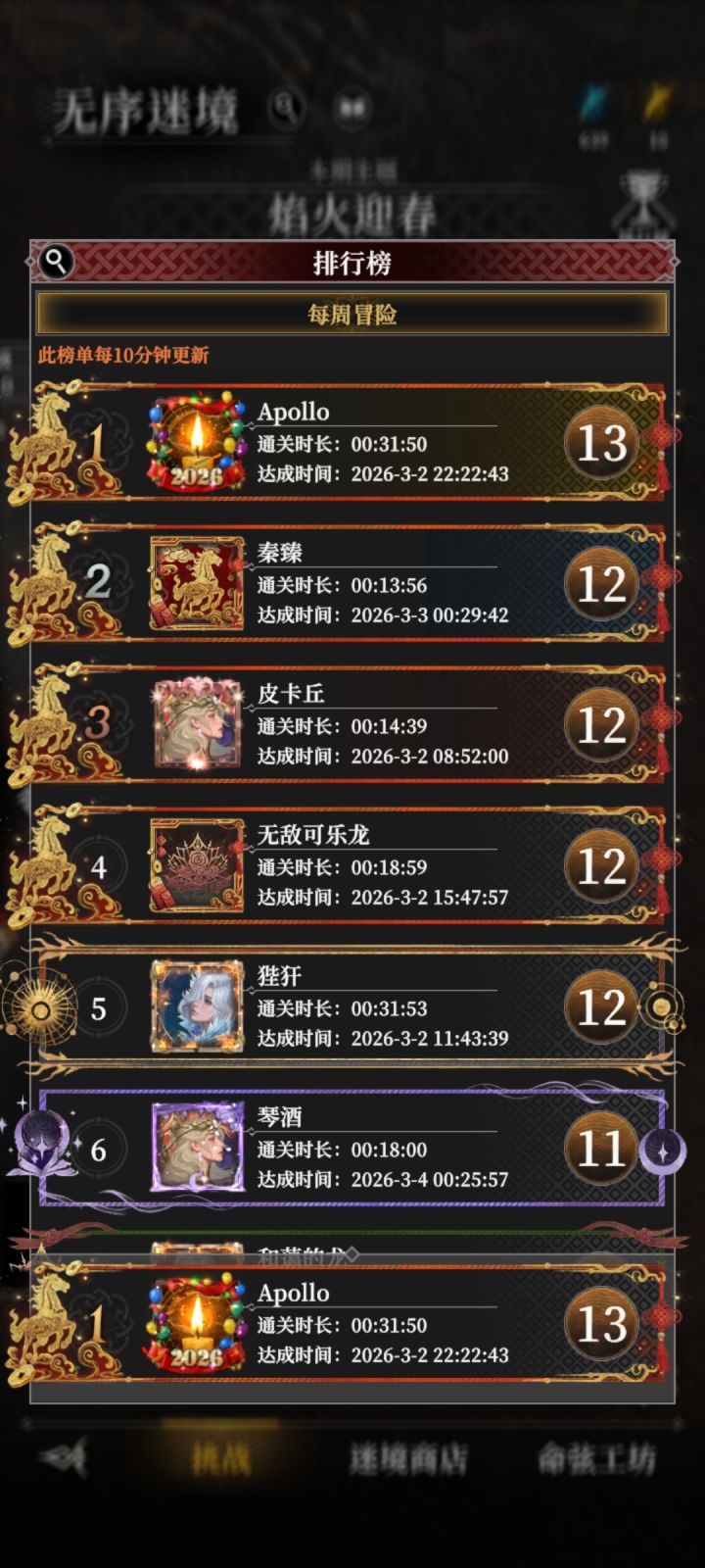 哈哈,继论坛某大佬首通龙痕后,我也终于把这999层肝完了。从此龙痕相关的每日任务再也做不了了[表情_捂脸哭]因为没法匹配了。