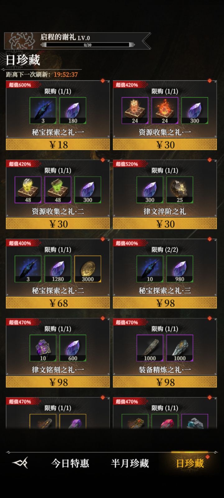 先说一句总结,半周年活动做得非常差,普通玩家基本没有参与感,氪佬又被精炼活动深深背刺,两边得罪了属于是。。。。。其他玩家该喷的都喷了,我也就不多喷了。 若想拿个光盾转职,微氪,平民玩家个人感觉其实可以建议挂机攒金币和钻石了。毕竟你直接花米抽秘仪,抽出来作用也不大,因为第一你还要升级命格碎片才能有属性提升,你手上金币和钻石又不多,买不了多少碎片,第二你光盾潜力又不高,属性跟原来的挂钩,相当于就多了