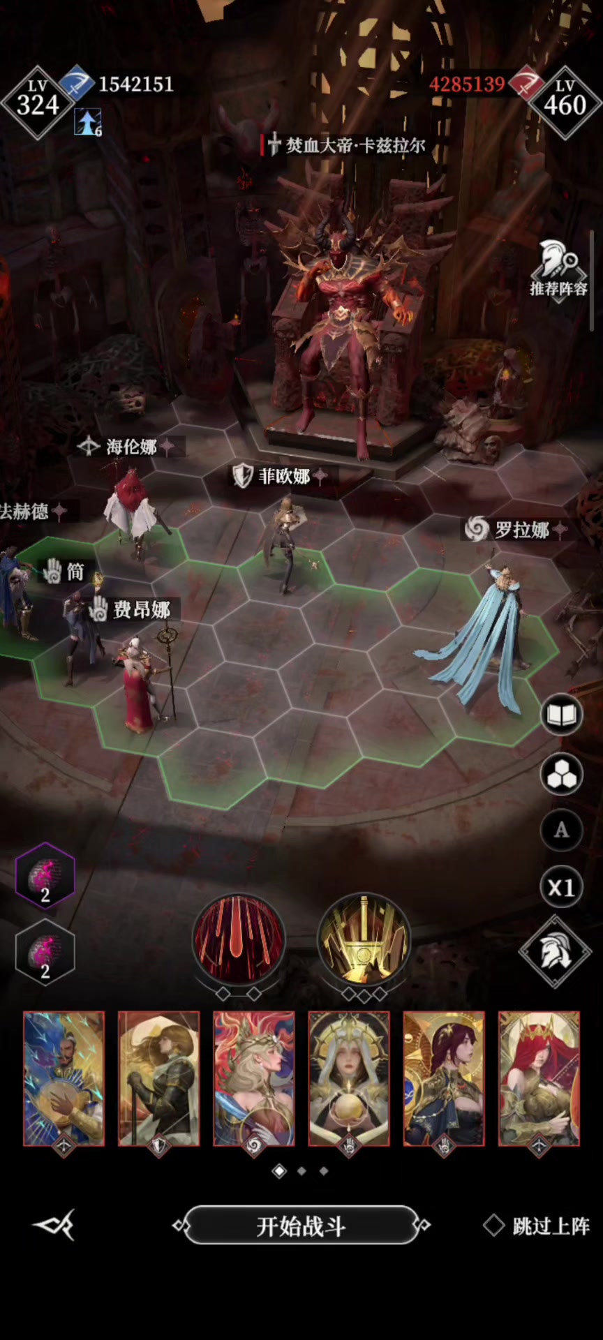我秘金装备太少,菲欧娜和蕾娜轮流死。 结果换成这个阵容一次就过了。 要点:①奶妈0攻速124回能,只有这个位置和阵型可以开局a3次就开技能,最后倒t也是因为奶妈a了4次才奶。如果有秘金+10回能武器会更稳。 ②骑士磐石套,回能越高越好,100回能会叠不上层数。 ③亲王双增幅卡好