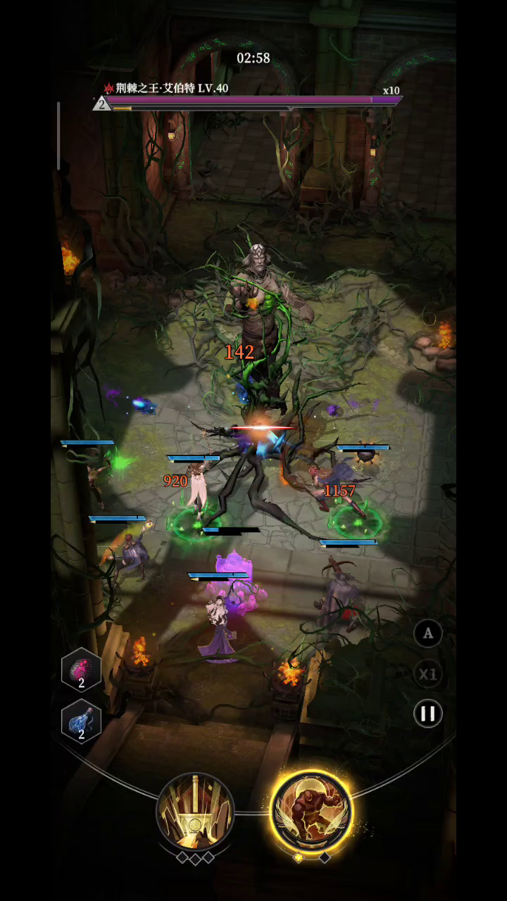 少上点前排,分开站位; 控制衔接好,配合减速瓶子减BOSS攻速 BOSS放大就用护盾石给前排挡,前排死完了就用石头人去挡#地下城堡4骑士与破碎编年史