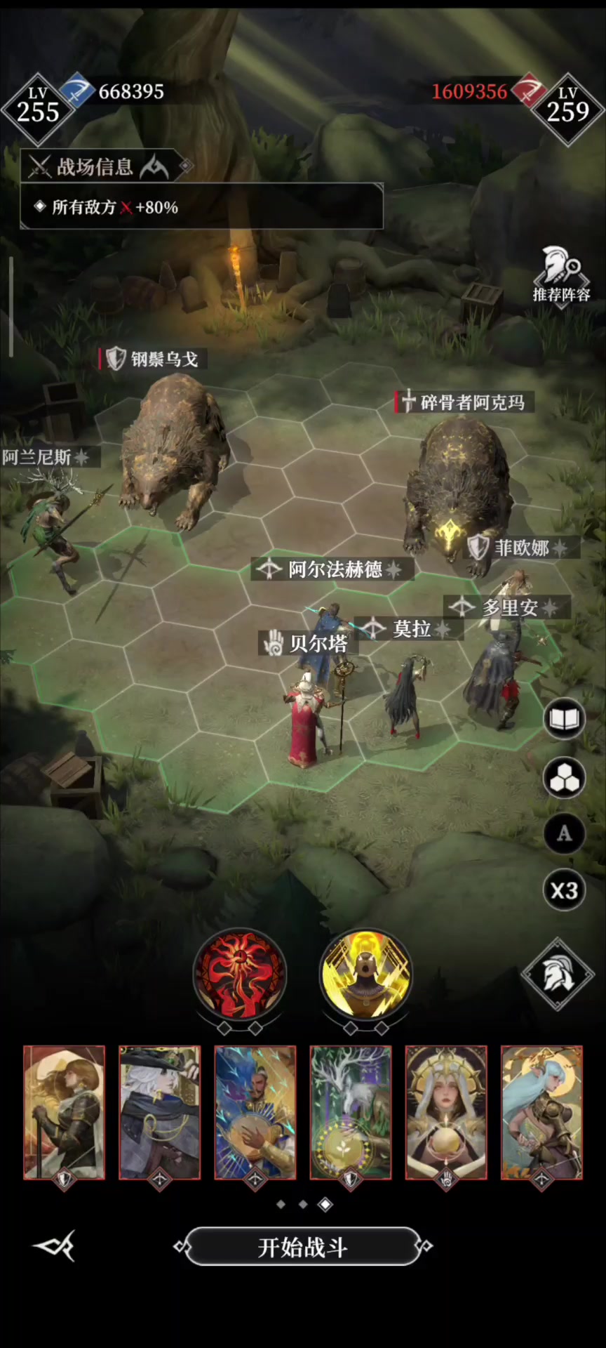 练度检测器,3组法师攻击顺序为中-右-左,右边这个敌人数量最多应该是最难的(如视频) 雷娜威力2.82,亲王2.79,剑圣2.76 神力我带了恶魔+石头人(也可换成狂热或其他,根据自己的练度来调整就行)