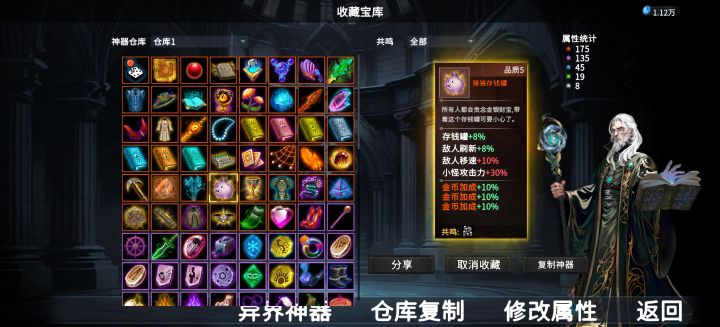 先叠个甲,作为最强的成长性角色,老头的强度全在神器词条上,随机不可控,所以boss关要尽量和boss拉开距离多吃大招层数,打的越久就越强,但是也有小概率刷了十几个词条全是用不上的导致崩盘。前期发育思路1,存钱罐是保证快速积累金币达到电表倒转的核心,只推荐洗金币加成,前期买下能买到的白色神器,以及所有天选共鸣神器,提高拿到自身藏品概率。2,绿色神器可以买到三次,也就是说洗出一个词条,在局内买满