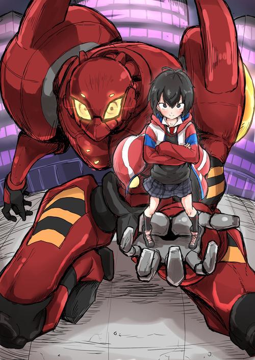 感觉……有点像ai)别骂我,主要是云的画风和机甲的画风😔😬😬