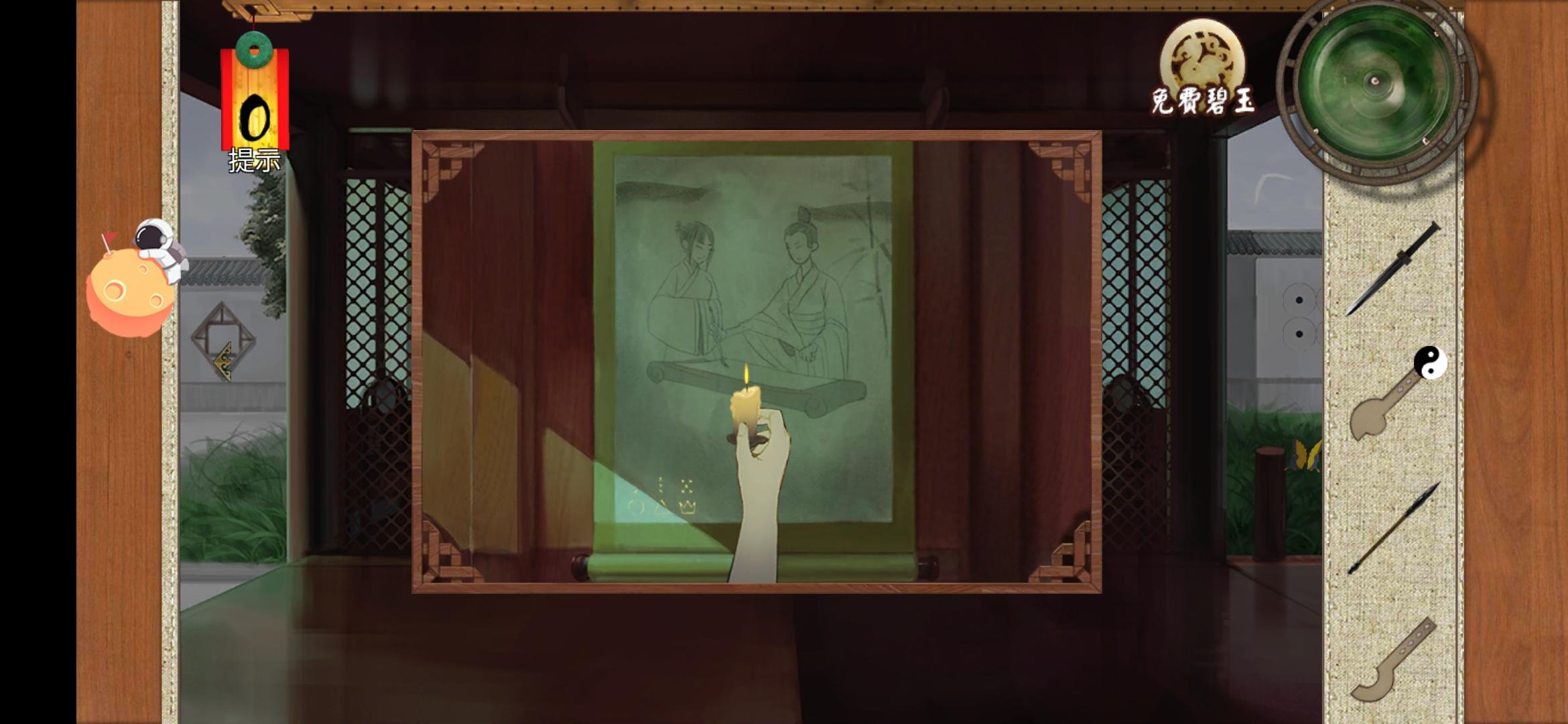 看到攻略贴里第三章只提了第一张图,用蜡烛查看画会得到有关机关盒密码的提示。虽然到此为止也能穷举出密码,但不找到后面这个提示,即使输入正确的密码也没有反应,打不开盒子。后图的过程:大树下洗砚池-毛笔蘸一下-树旁边有个菱形窗户-用毛笔涂湿这两个线索都找到后就能打开机关盒了#密室逃脱绝境系列3画仙奇缘